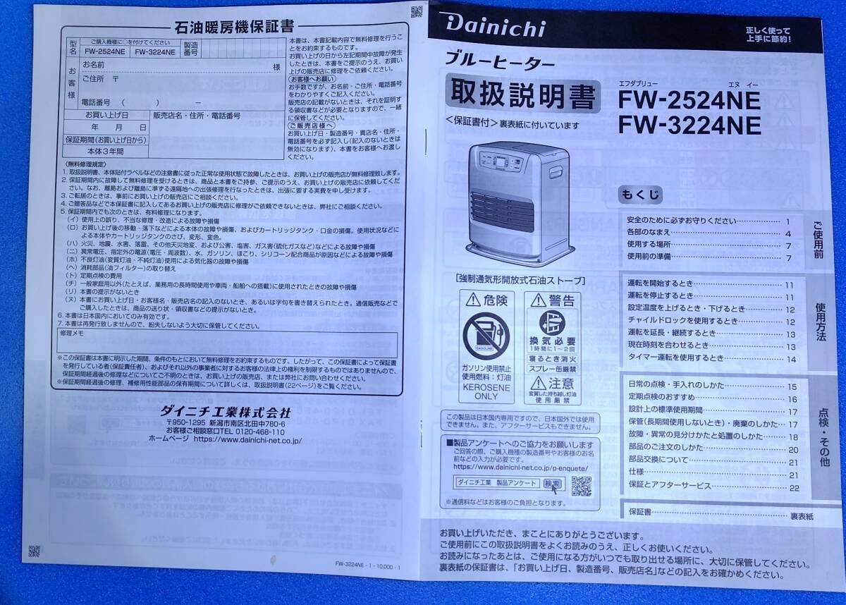 【美品】 ダイニチ ブルーヒーター FW-2524NE チャコール 2024年製 木造7畳/コンクリート9畳 タンク3.5L 秒速消臭 汚れんキャップ