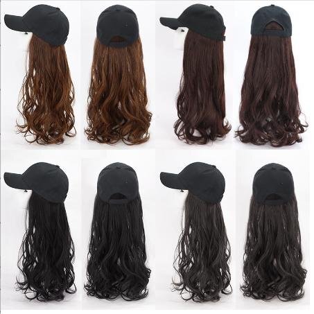 ウィッグ付きキャップ カラーA 髪色チェンジ かぶるだけ キャップ ゆるふわ ロングカール キャップ付きロングウィッグ