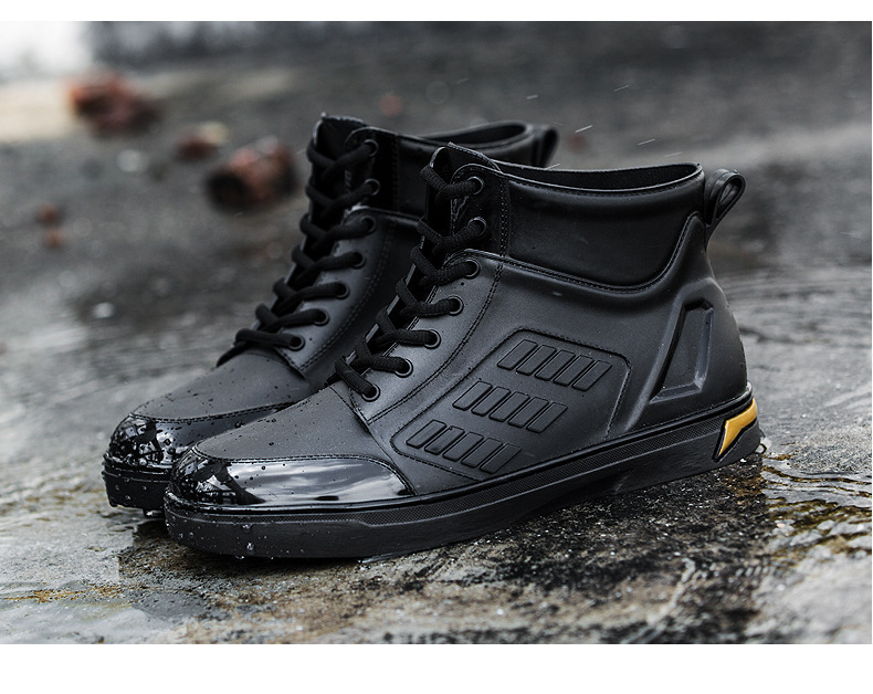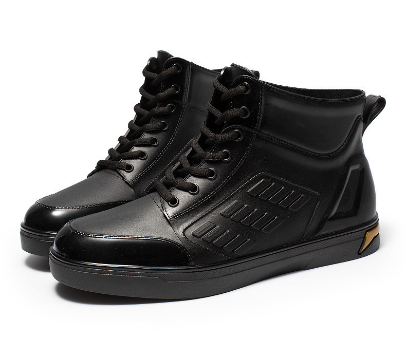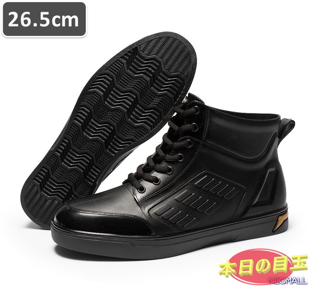1スタ ☆【487】メンズ レインシューズ ブラック×ブラック 26.5cm オシャレ ショートブーツ シンプル 梅雨 雨 長靴 雨靴 防水
