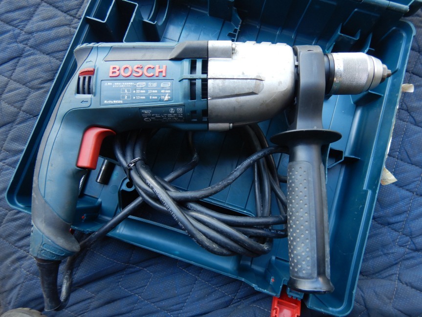 即決税込 中古保証付 ボッシュ 振動ドリル GSB21-2RE コンクリート最大22mm 無段変速 正逆切替 2段変速 =============== ボッシュ 振動ドリル GSB21-2RE 定価 58000円 最大穴あけ能力 コンクリートブロック 22mm 鉄工 13mm 木工 40mm チャック能力 13mm 回転数 低速 0~900回転/min 高速 0~3000回転/min 振動数 低速 0~15300回/min 高速 0~51000回/min 電源 単相100V 消費電力 920W 全長 355mm 重量 2,85kg 回転/回転振動切替 無段変速 正逆切り替え 付属品 ケース、サイドハンドル 中古ドリル各種 振動ドリルの場合、 最大能力の半分程度を 適応穴あけ能力と お考えください。 実際に10mmの振動ドリルにて 穴あけテストを行っております。 調子よく穴あけできます。 芯ブレ、回転/回転振動切替 無段変速 2段変速 正逆切り替えも確認済です。 異音もありません。 サイドハンドルのデプスゲージ 取り付け部が破損しており、 デプスゲージがずれてしまいます。 ================ 即決ですので入札=落札です。 落札価格は消費税込みの金額です。 早いもの勝ち!! ================ |