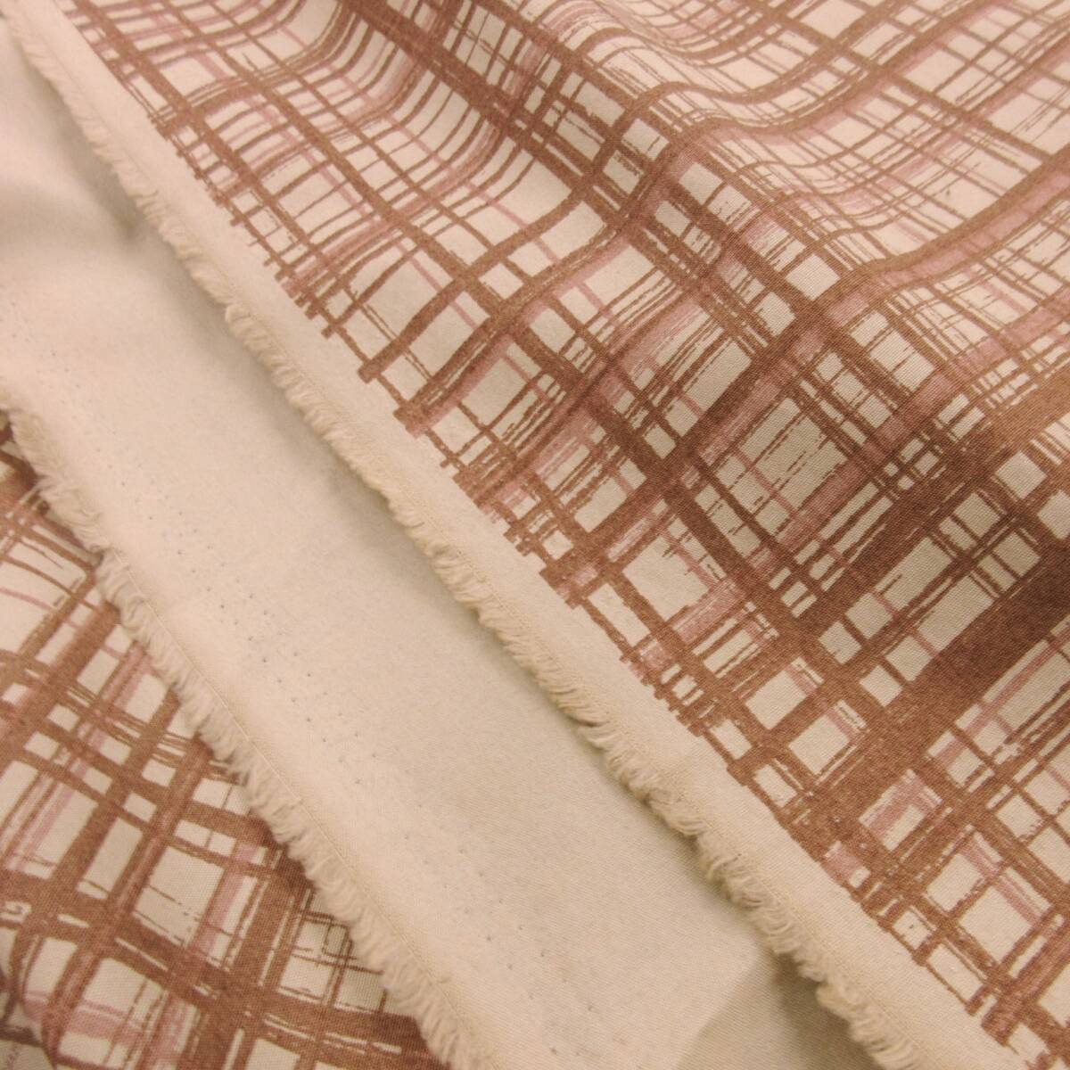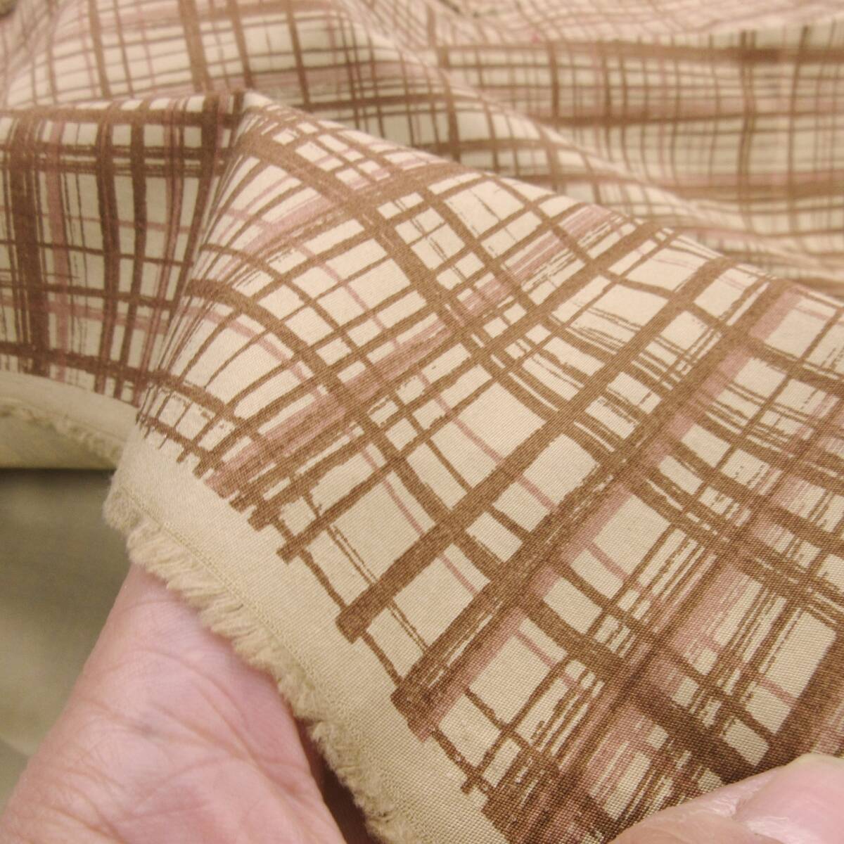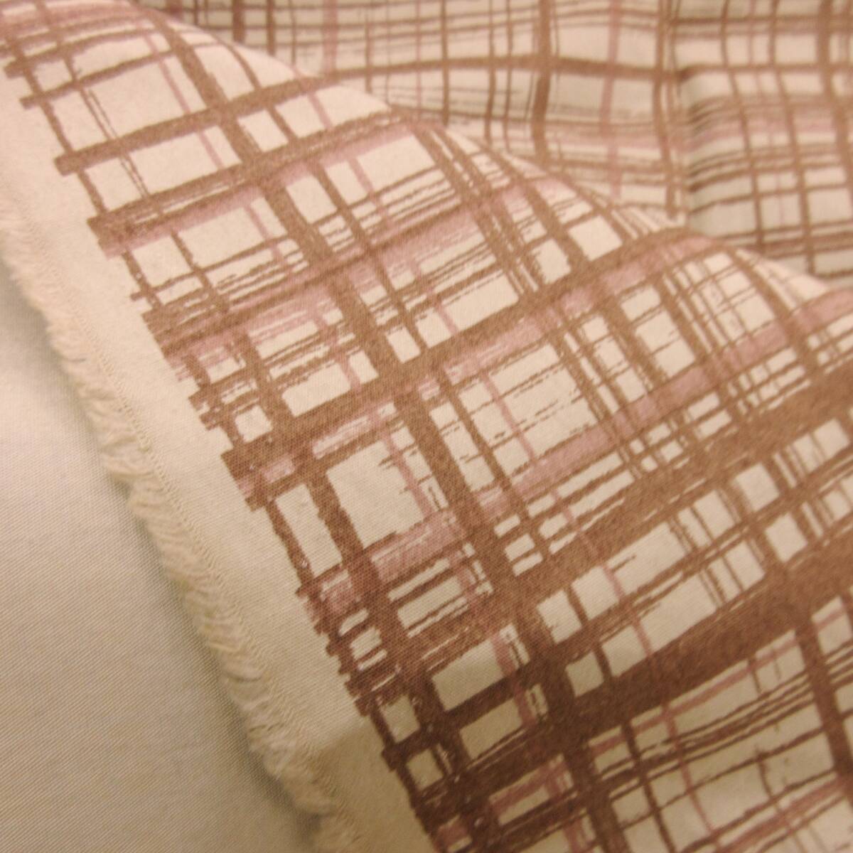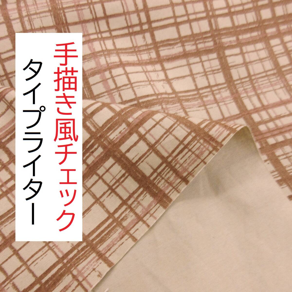 ★3m★手描き風★ランダムチェック★綿100%★タイプライター★ベージュ★419640★ハンドメイド★現品1点限り★新品★同梱発送可能★