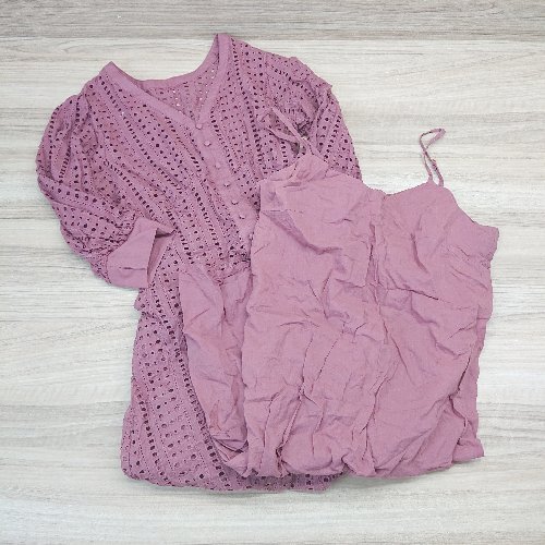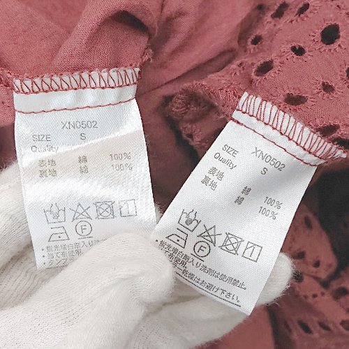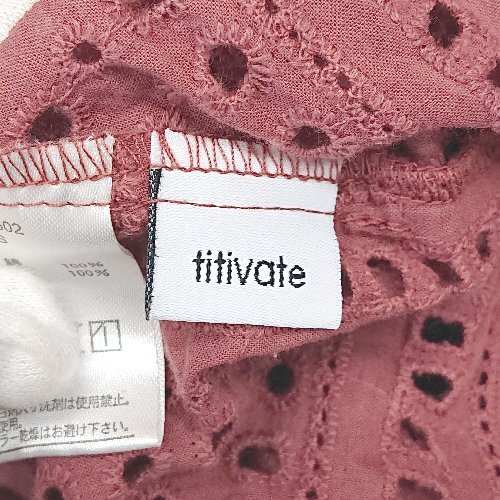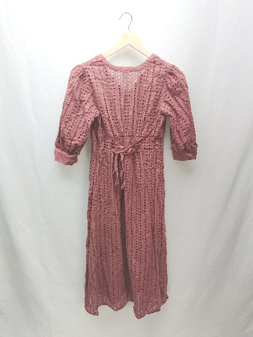 ◇ titivate Vネック 総レース 前ボタン フレア 5分袖 ロング ワンピース Sサイズ ピンク レッド レディース E