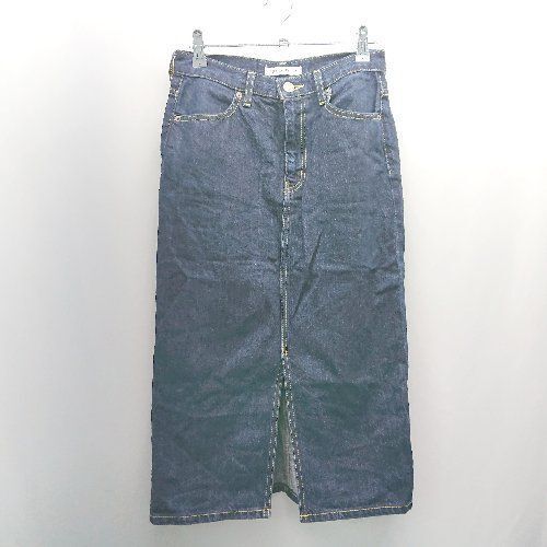◇ AZUL BY MOUSSY デニム生地 裾スリット コットン100% カジュアル 膝丈 タイト スカート サイズM ブルー レディース E