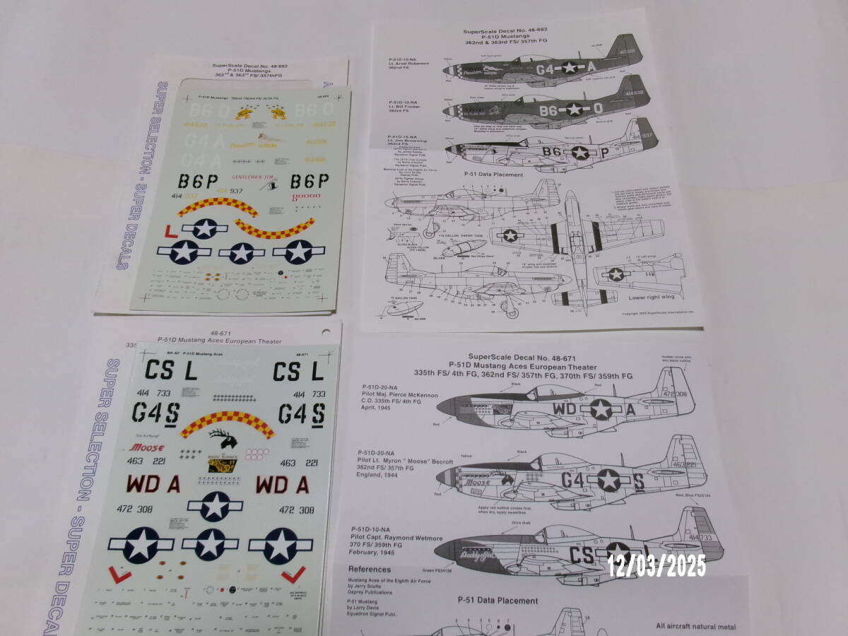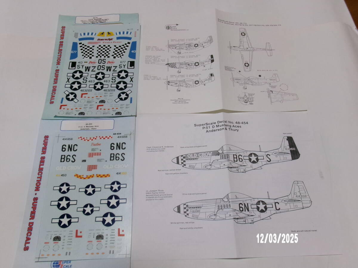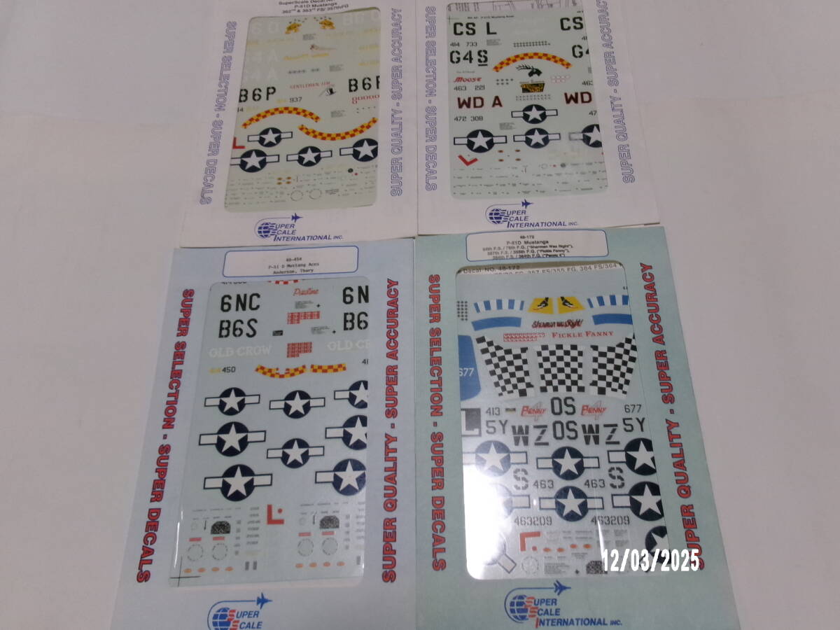 コレクション整理です。古いスーパースケールデカール1.48 P-51Dエース機の4点です。全て開封済です。お探しのお方にお勧めです。