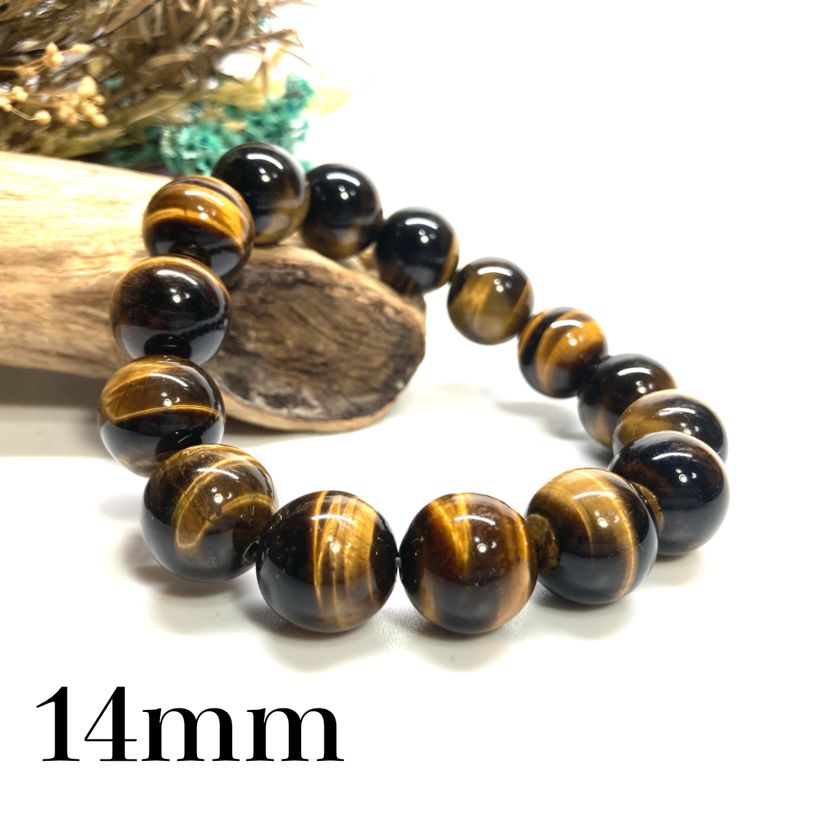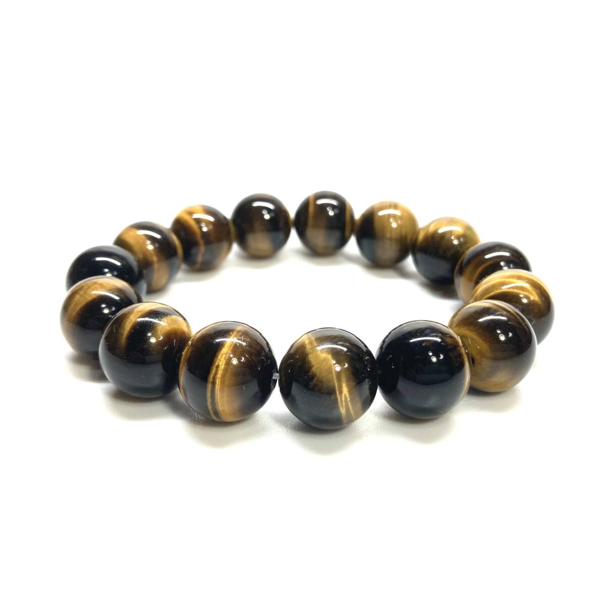 タイガーアイ パワーストーン ブレスレット 14mm 天然石ブレス (シンプル) 開運 浄化 数珠ブレス メンズ 男性 プレゼント 14ミリ