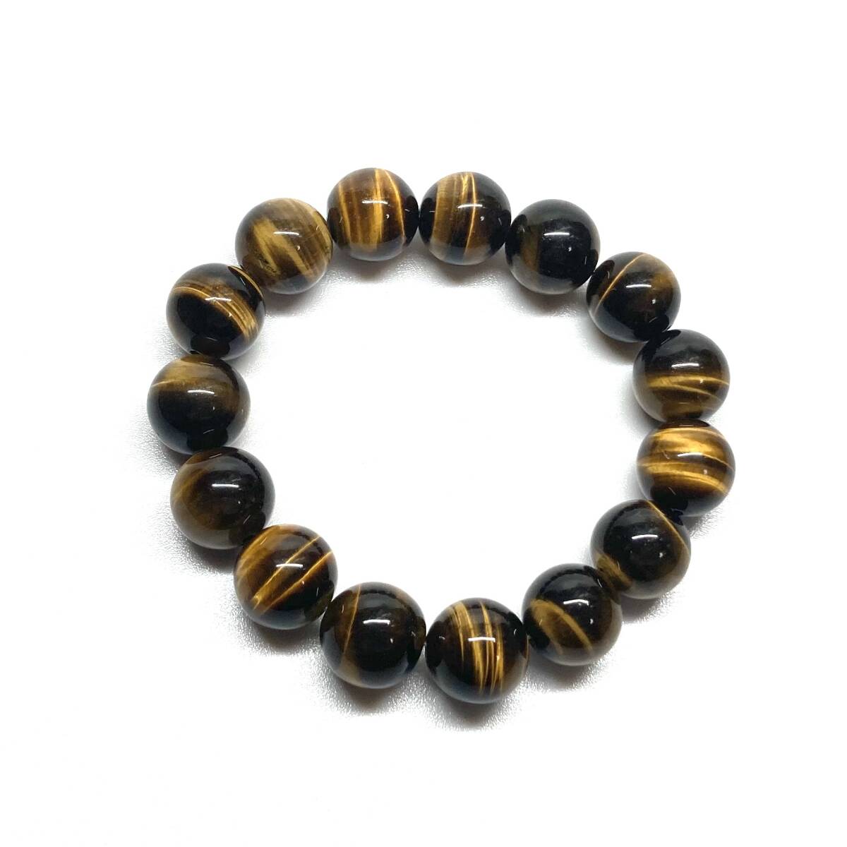 こちらは、タイガーアイの14mm玉を使用したパワーストーンブレスレットです。シンプルなデザインですのでどんなコーディネートとも合わせ易いブレスレットです。インパクトがある14mm玉を使用して内周約17cmです。パワーストーンを付けてる方へのプレゼントにもお勧めです。14mmサイズのリクエストが多々ありましたので少量ですが販売しました。気になる方はお早めにどうぞ。