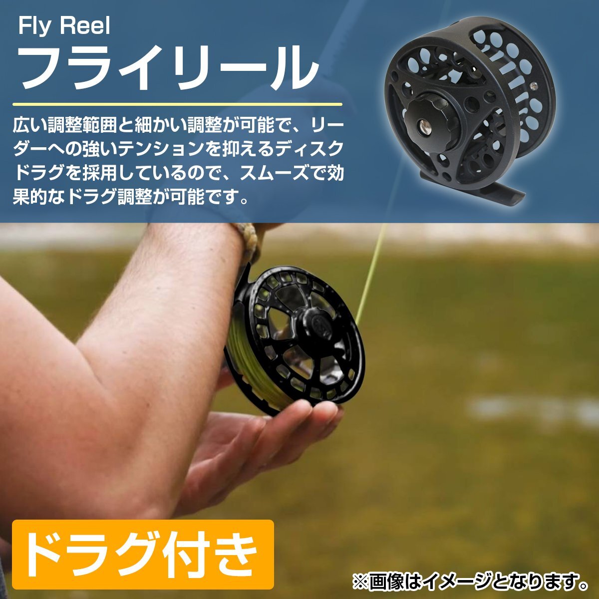 アルミ製 フライリール #5/#6 ドラグ付 アルミ ダイキャスト ブラック 黒 フィッシング リール 川 釣り フライフィッシング 5番 6番