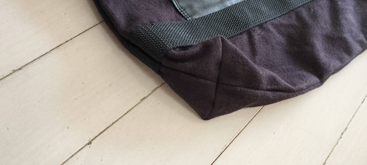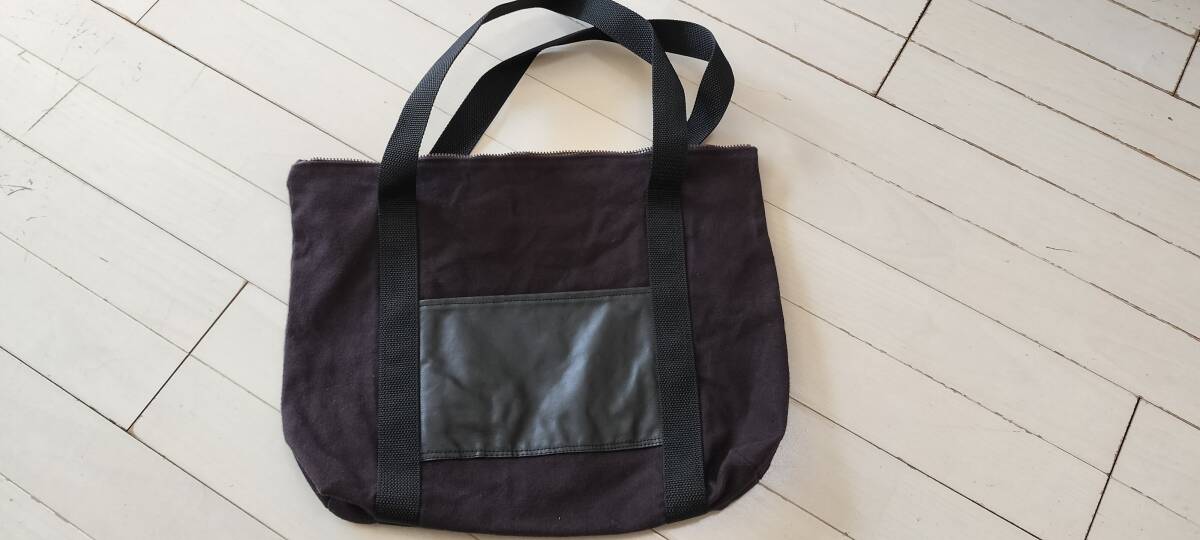 起毛がかった素材で片面外のポケットは合皮素材です。