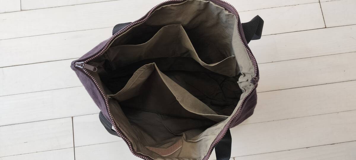 内にポケット3つ。内1つ大きめポケットはマジックテープ止めにしています。