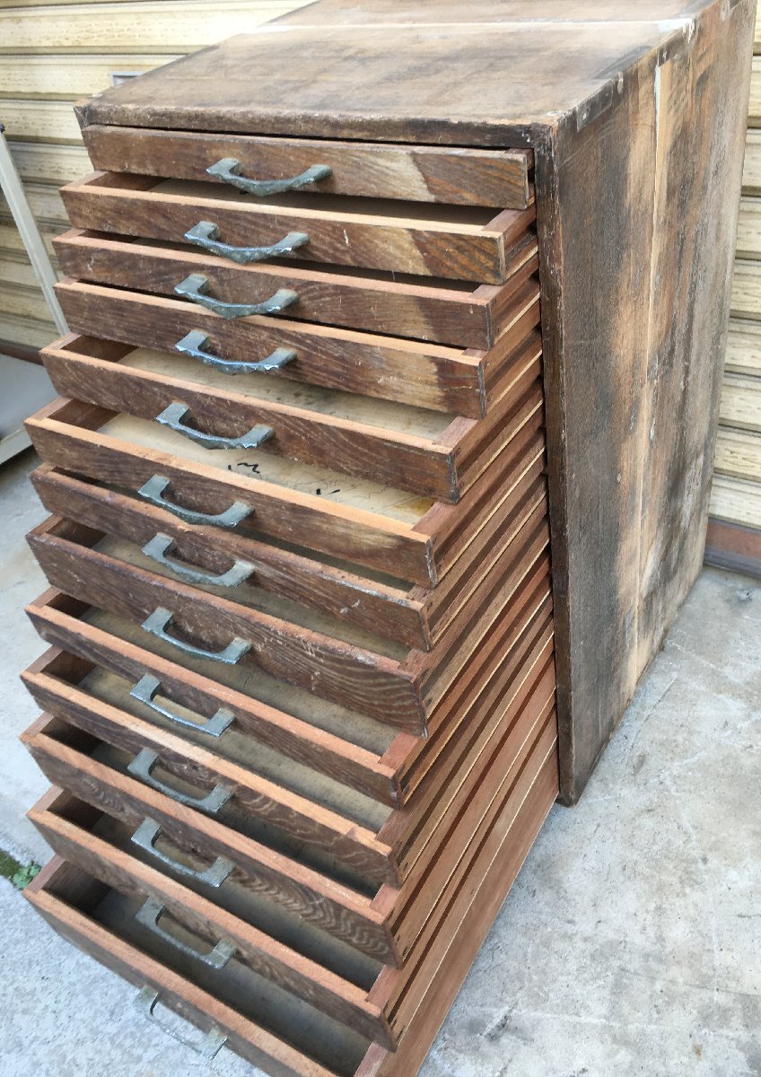 A4769 木製 13段 引き出し 収納 道具箱 工具箱 木箱 大工道具入れ 古材 アンティーク 古道具