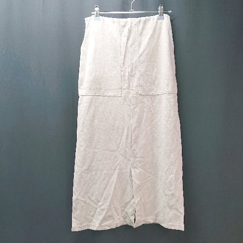 ◇ MOCA モカ スリット ニット生地 ウエストゴム ロング丈 タイト スカート サイズF ベージュ系 レディース E