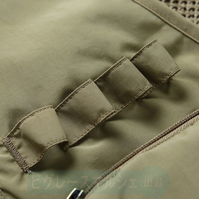 フィッシングベスト カメラマン メンズ アウトドア メッシュ ジャケット ベスト トップス 登山 多機能 速乾 作業服 カーキ hw1423.kq.3XL