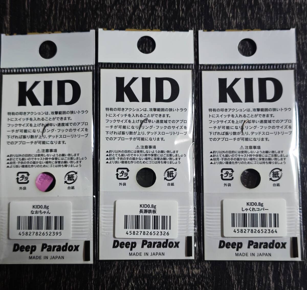 | ※新品未開封品ディープパラドックス KID 0.8g オリカラ 3枚セットの販売になります。 | ||