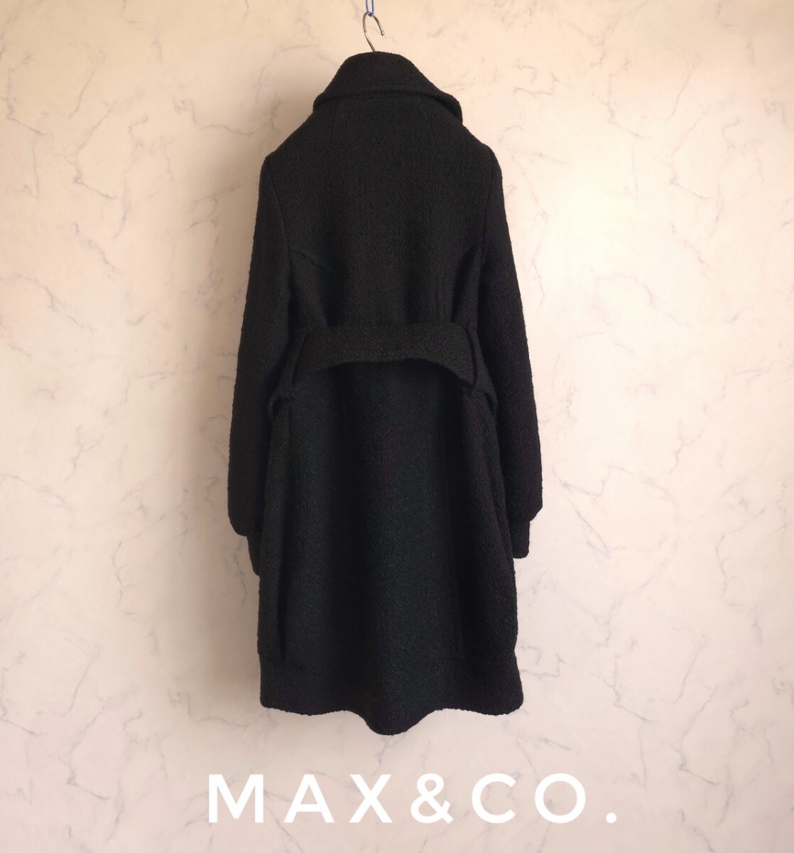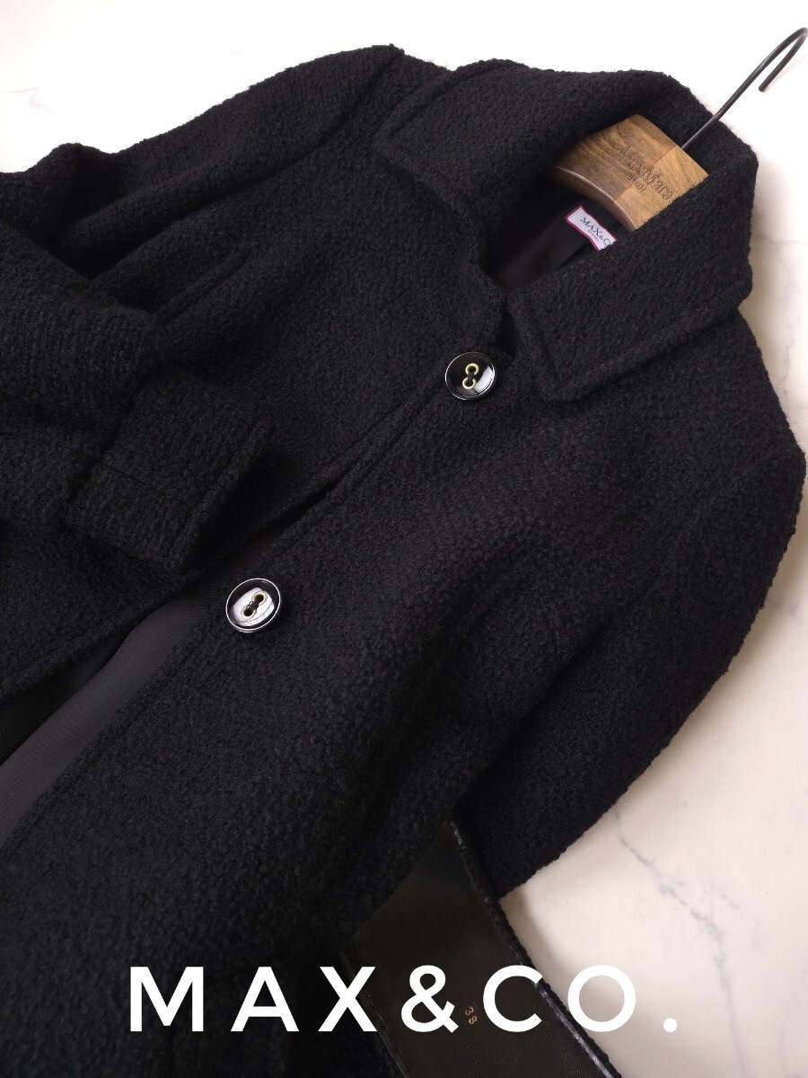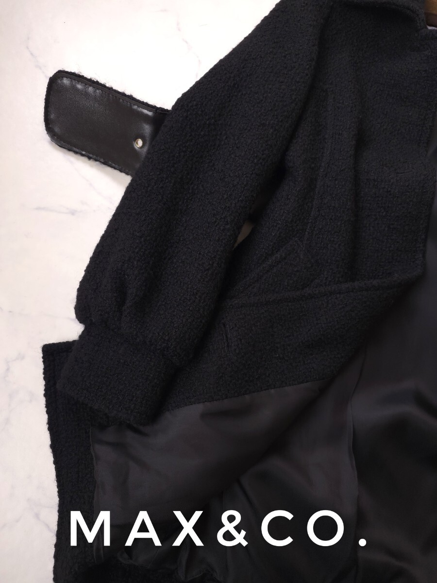 超高級 美品 Maxmara 一級品おしゃれモダンふわぽこコート ベルテッドスタイル ブラック max&co. マックスマーラ マックスアンドコー