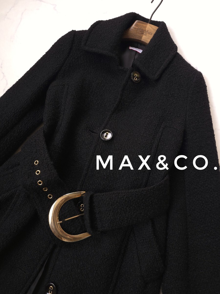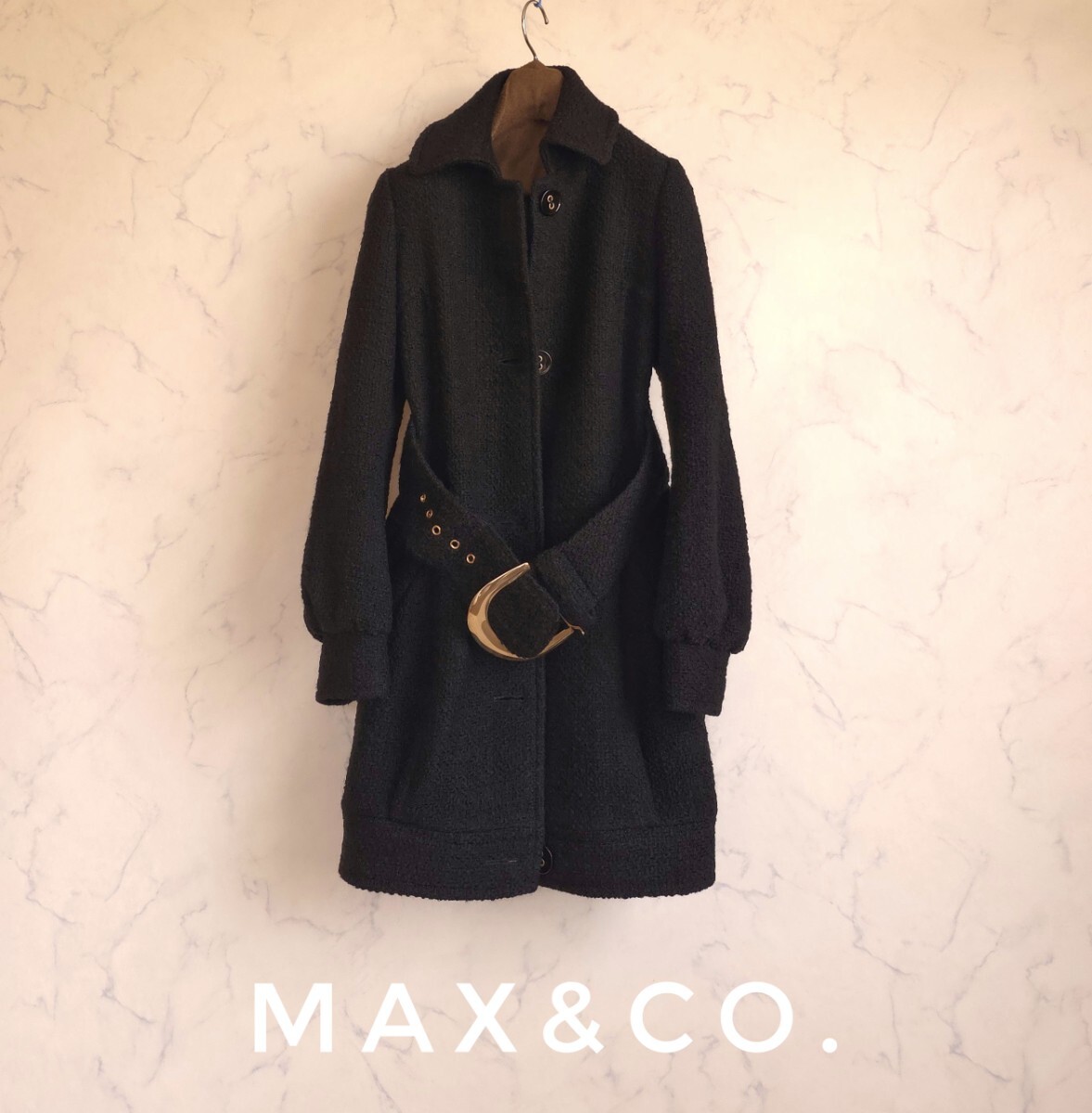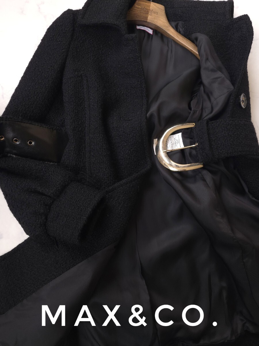 超高級 美品 Maxmara 一級品おしゃれモダンふわぽこコート ベルテッドスタイル ブラック max&co. マックスマーラ マックスアンドコー