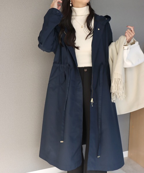 参考商品名:《撥水加工》ウエストドロストフード付きジップトレンチコート