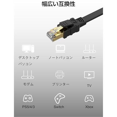 サイズ: 0.5m Senetem LANケーブル 0.5m CAT8 40Gbps/2000MHz カテゴリー8 超高速インターネットケーブル CAT8準拠 フラットケーブル RJ45 ツメ折れ防止 ブラック モデム ルータ PS3 PS4 PS5 Xbox等に対応