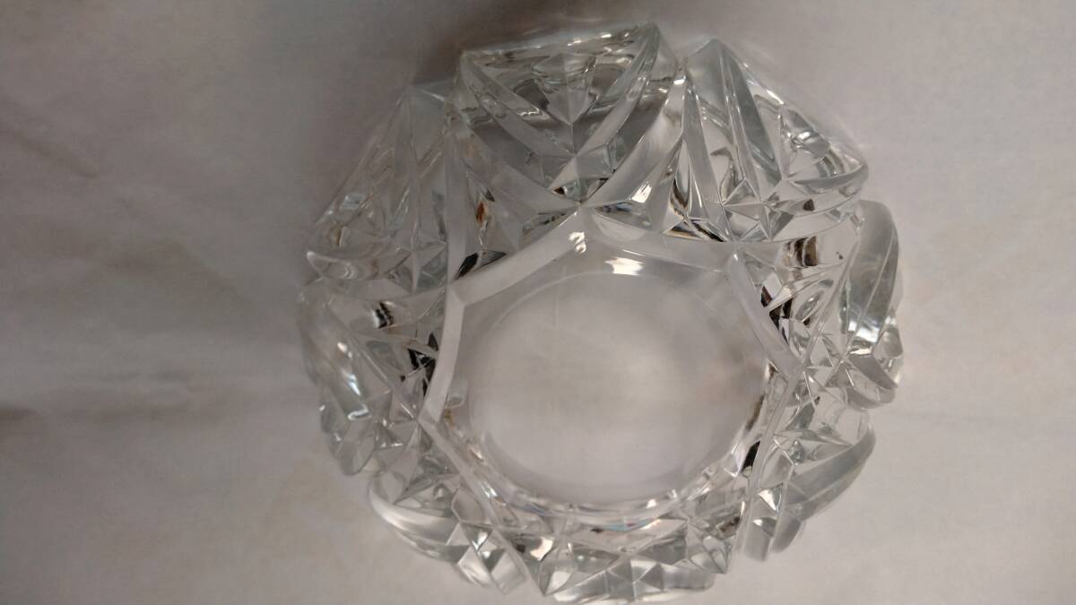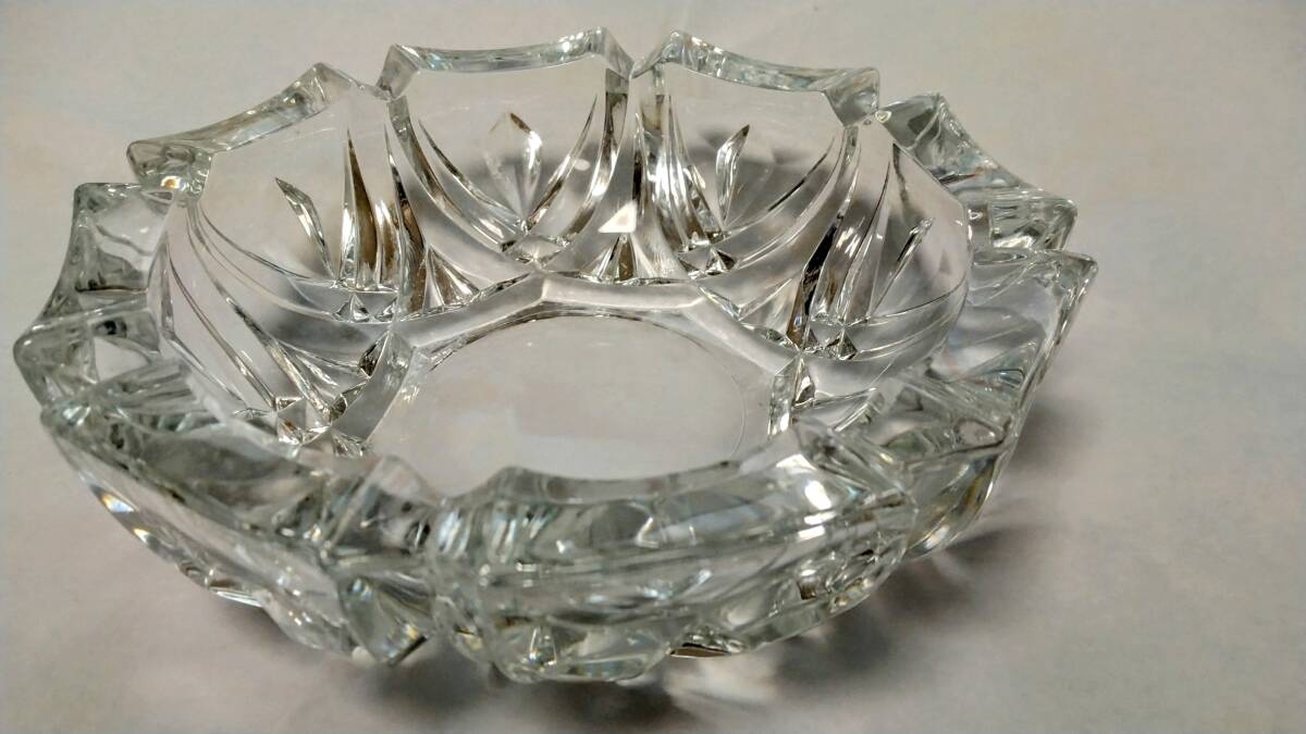 ご覧いただきありがとうございます。 クリアガラス製の花型灰皿 直径18cm、重量975g 来客用に購入しましたが使用せず保管していました。