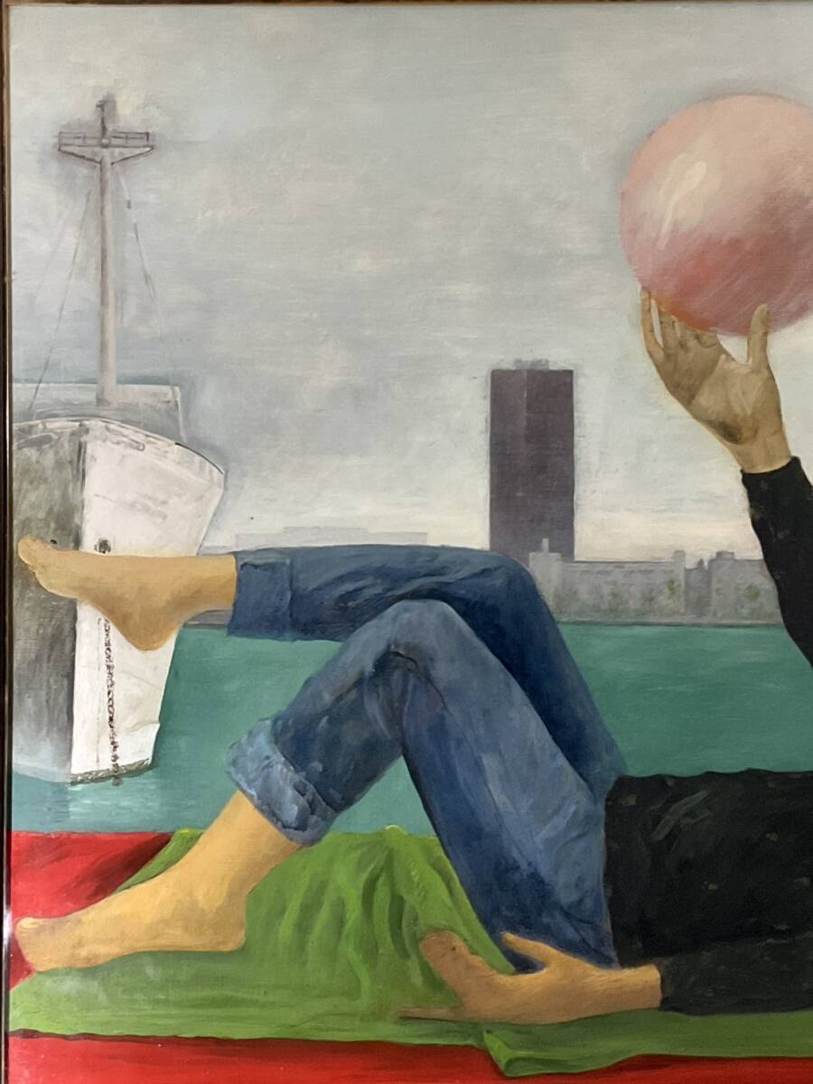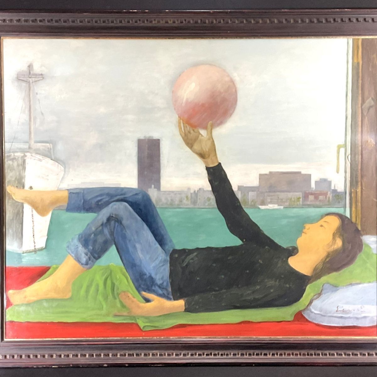 真作■油彩■大津英敏■『港』■30F大型最高傑作■日本芸術院会員 多摩美術大学教授 現代巨匠■額付絵画