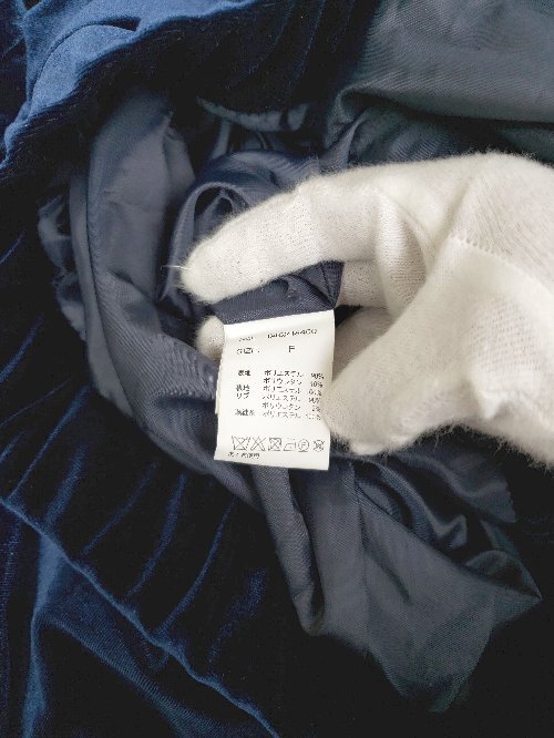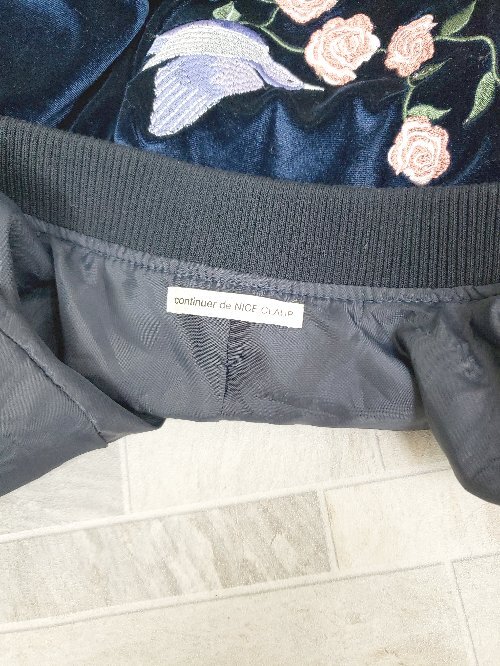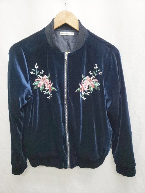 ◇ Θ NICE CLAUP ナイスクラップ ベロア 刺繍 光沢 長袖 ブルゾン ジャケット サイズF ネイビー レディース P