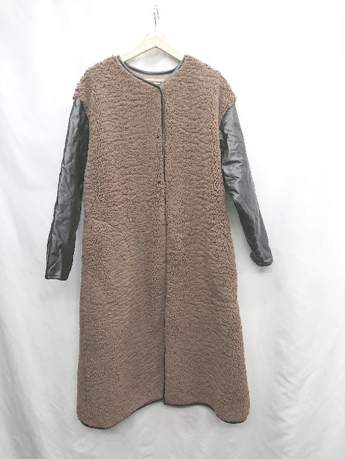 ◇ ⊇ solace 異素材ドッキング 長袖 ロングコート サイズF ブラウン レディース E