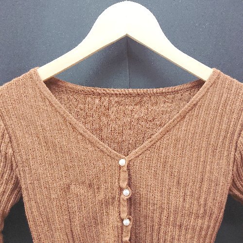 ◇ MOUSSY マウジー ショート パールボタン 長袖 ニット カーディガン サイズF ブラウン レディース E