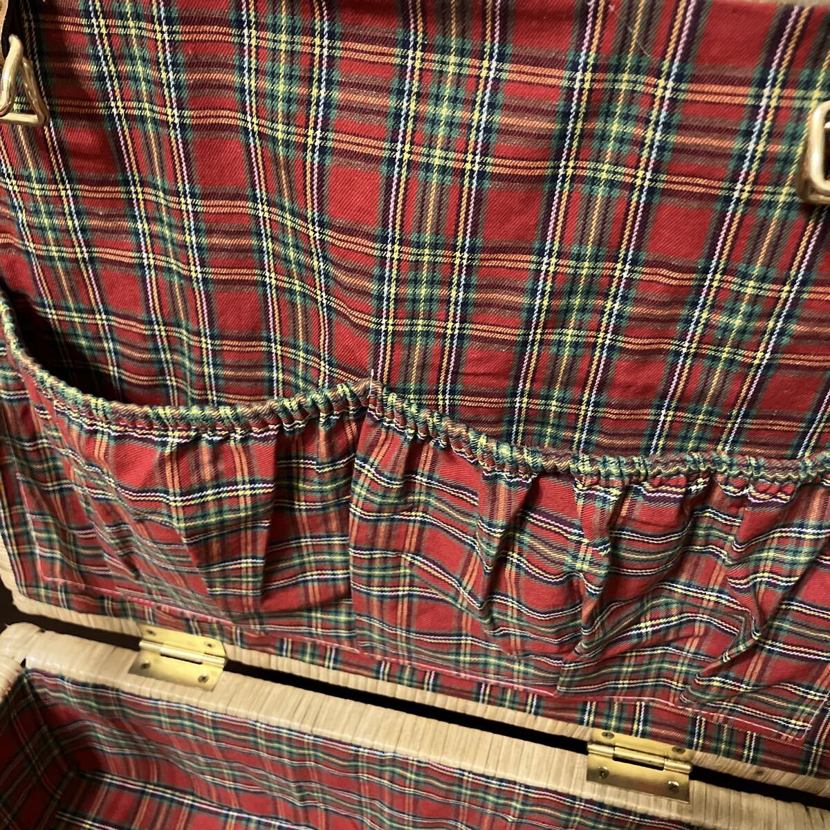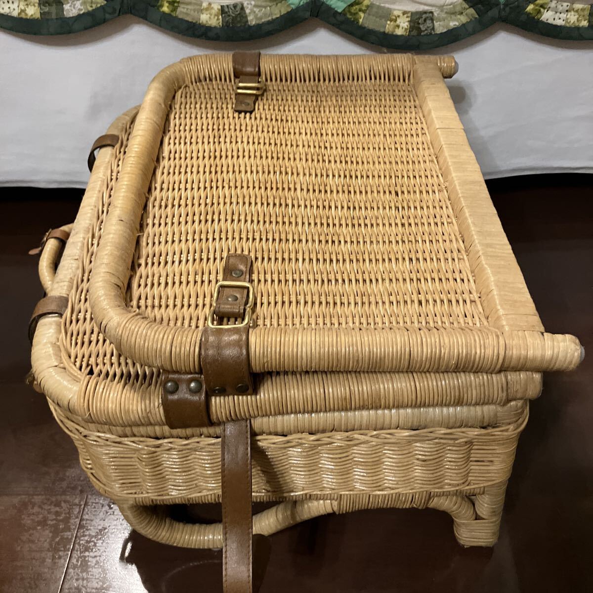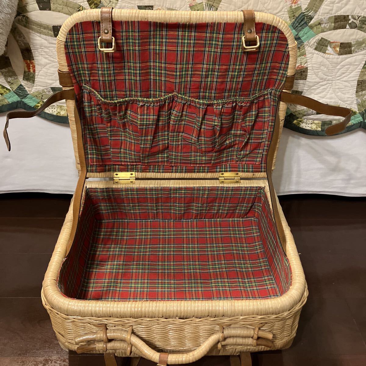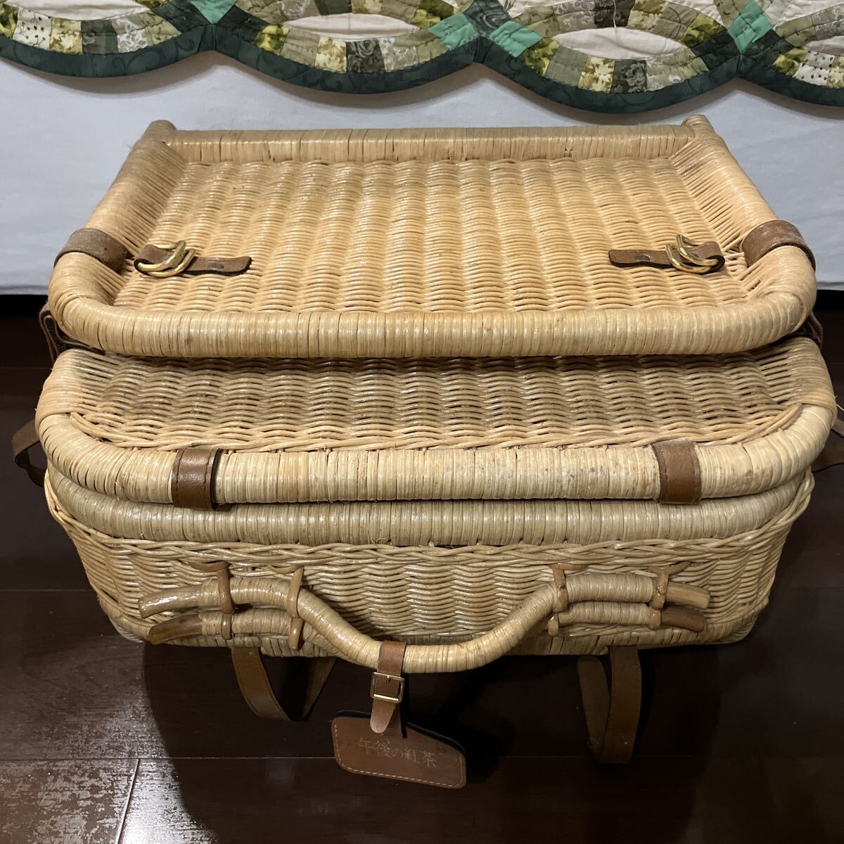 コイズミトランク ラタン バスケット 収納 かご 昭和レトロ ピクニック 籐 非売品 キリン 午後の紅茶 合皮 タグ付 赤 チェック