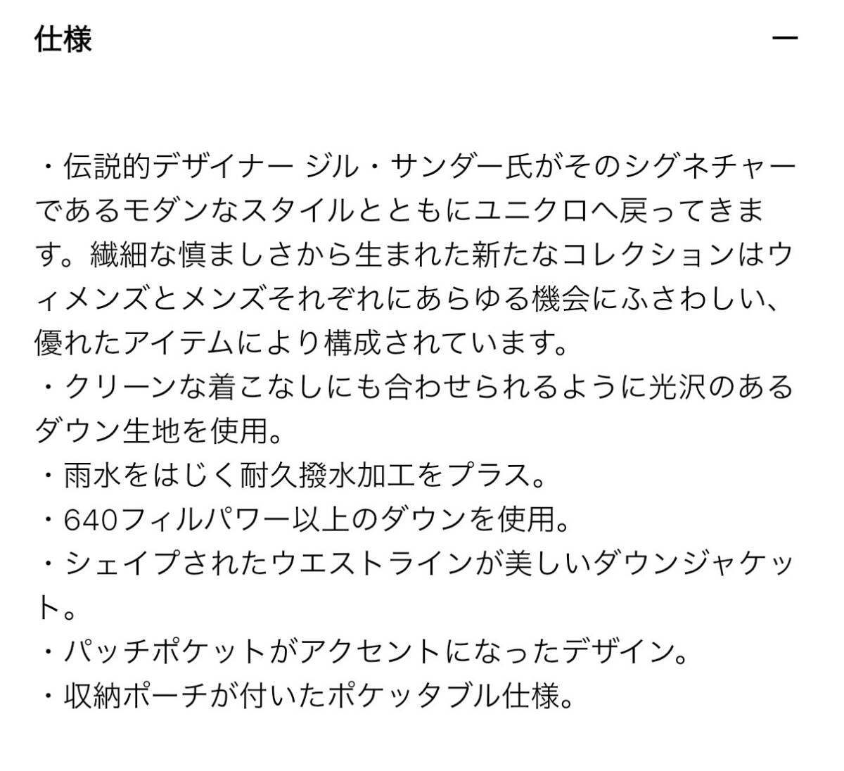 数年前に購入したユニクロ+Jのウルトラライトダウンジャケットです。