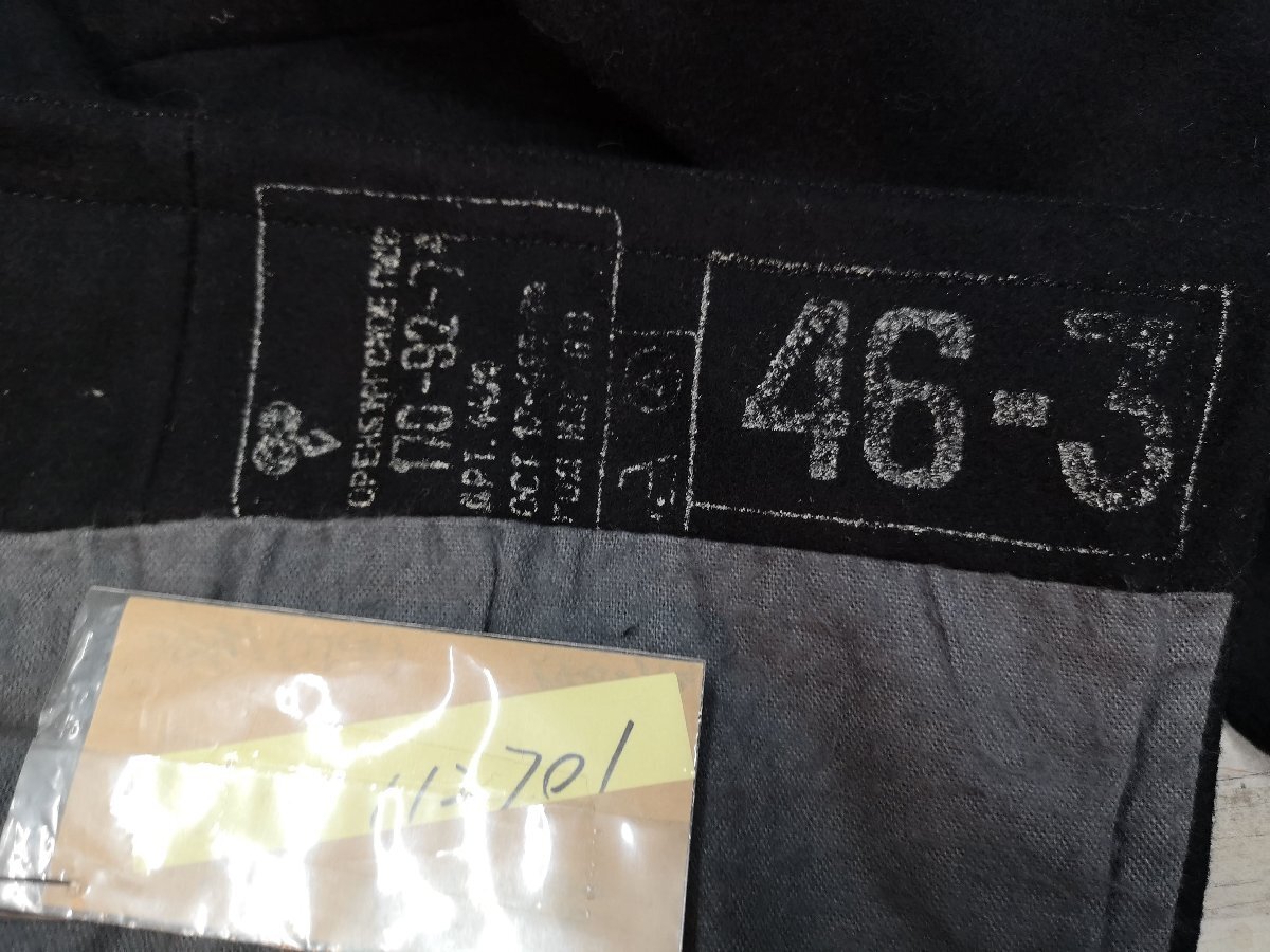 ソ連海軍実物のウールジャケットです。5枚目までの写真は流用です。 冬用のジャケットでウール素材の裏地には起毛させたソフトな質感の生地が付けられており、 腕部分の裏地にはコットンツイルが使われています。 細身のショート丈でキレイなシルエットなので普段使いでも合わせやすいアイテムです。 ポケットはフロント2ヶ所と内側1ヶ所。 前合わせはイカリマークボタンのダブルブレストタイプで左右どちらを前にしても着用できます。 ●サイズ 44 ( 身幅約47cm / 肩幅約42cm / 着丈約70~75cm / 袖丈約60から65cm ) 46 ( 身幅約49cm / 肩幅約44cm / 着丈約70~75cm / 袖丈約60から65cm ) 48 ( 身幅約52cm / 肩幅約46cm / 着丈約70~75cm / 袖丈約60から65cm ) 50 ( 身幅約54cm / 肩幅約48cm / 着丈約70~75cm / 袖丈約60から65cm ) ※着丈、袖丈は個体差がございます。予めご了承下さい。 ●素材:ウール ●状態:デッドストック(未使用品ですが長期にわたり倉庫にて保管されていた商品)の為、日焼け、色ブレがある場合がございます。 予めご了承の上ご注文下さい。 沖縄離島を除く全国500円でお送りいたします、落札価格にプラスでお願いいたします。