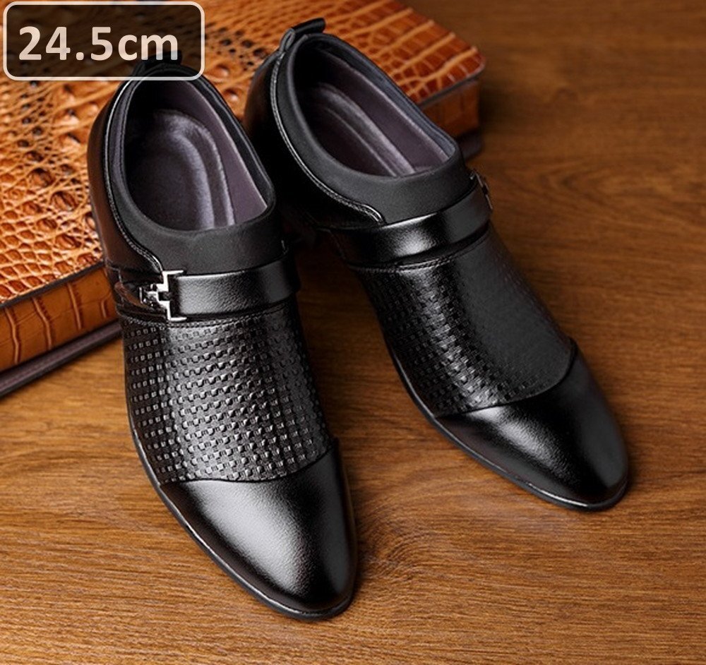 人気商品 ☆ メンズ ビジネス レザー シューズ ブラック サイズ 24.5cm 革靴 靴 カジュアル 屈曲性 通勤 軽量 仕事 【613】