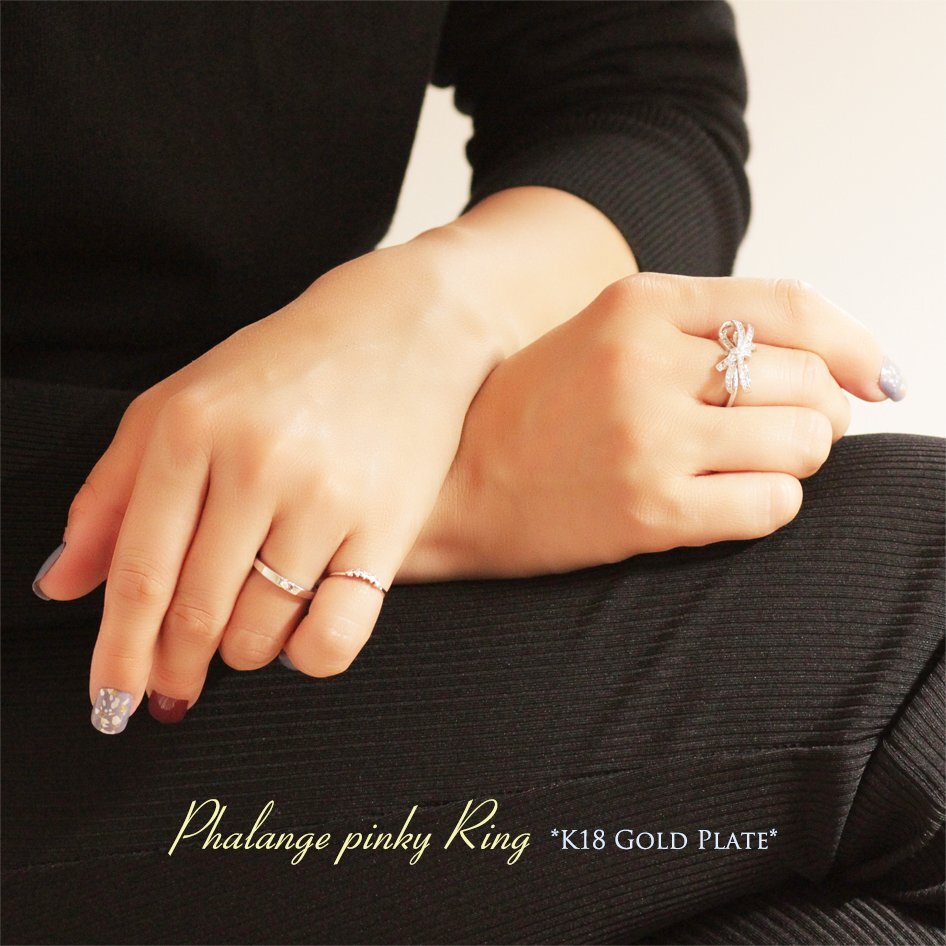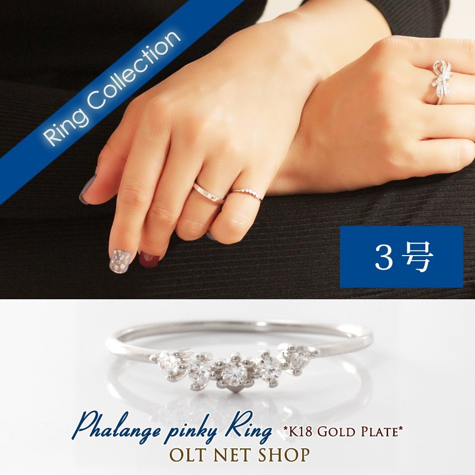 3号 / 新品 ピンキーリング K18GP 指輪 ファランジリング シルバー 18金 ホワイトゴールド レディース ダイヤ CZ 小指 ミディ 関節 女性