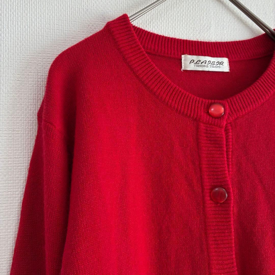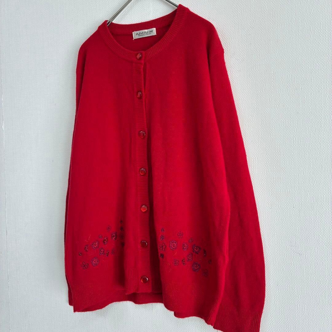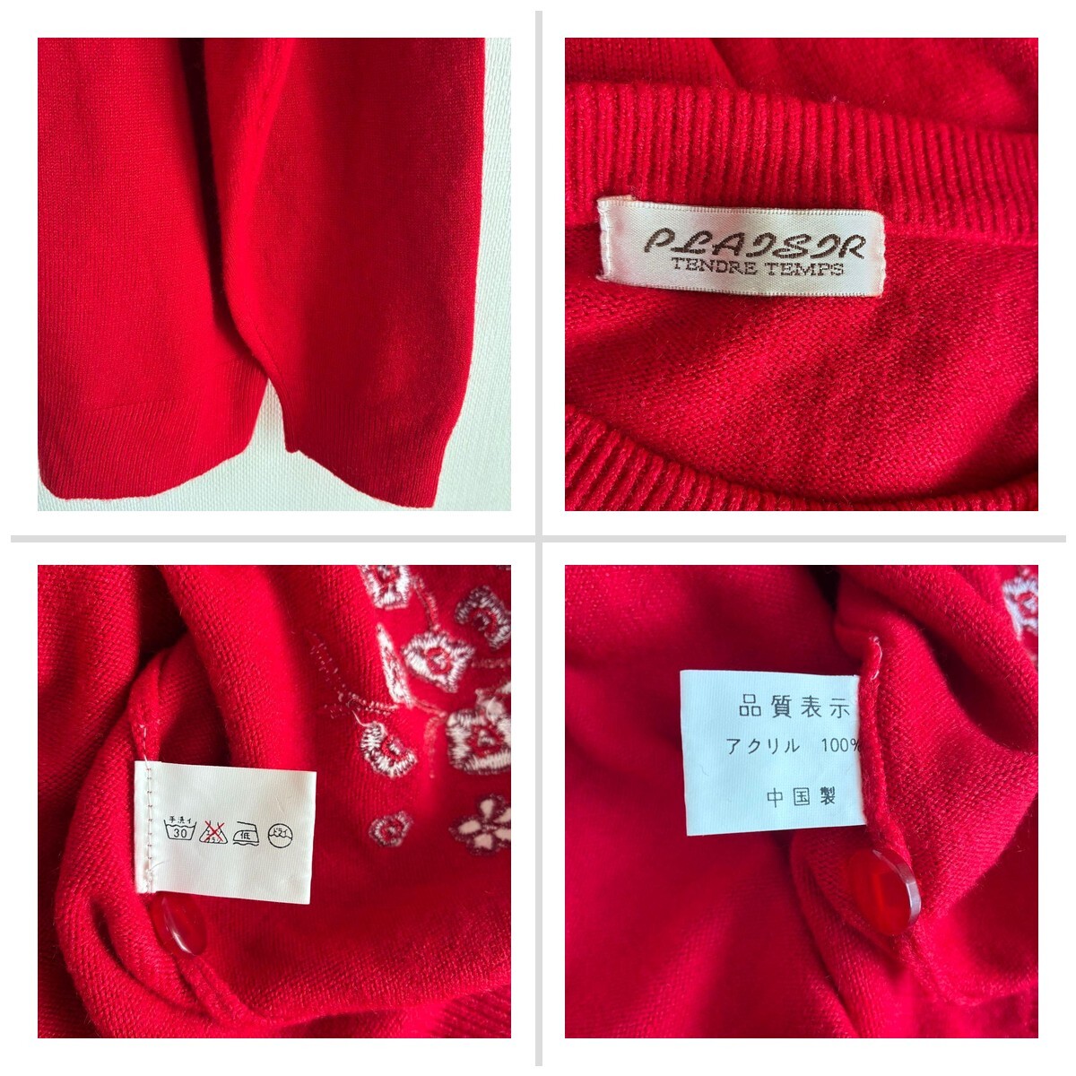 レッド 赤 長袖 花刺繍 カーディガン 上品 重ね着 レイヤード クリスマス イベント デート 新年会 忘年会 通勤