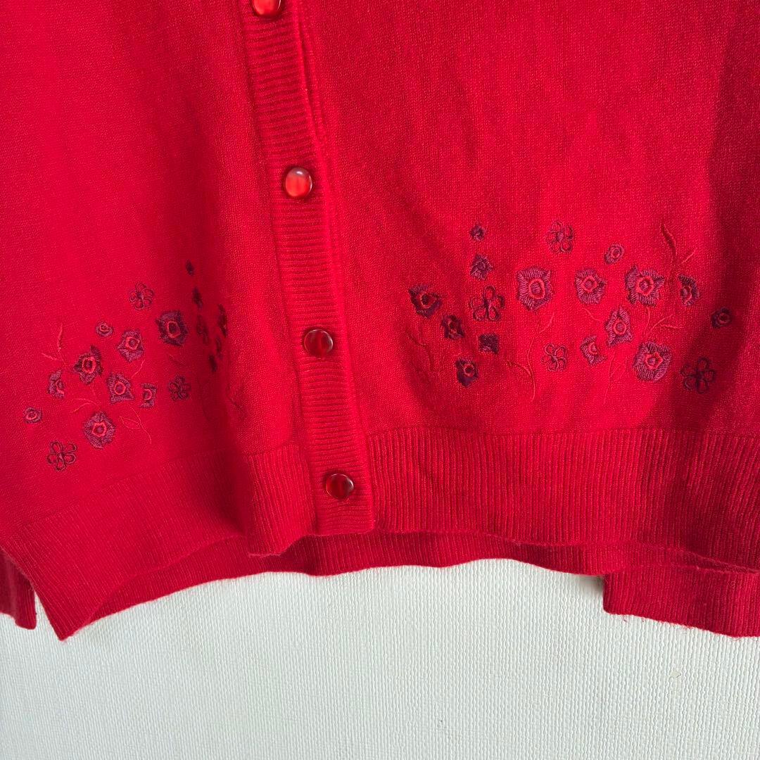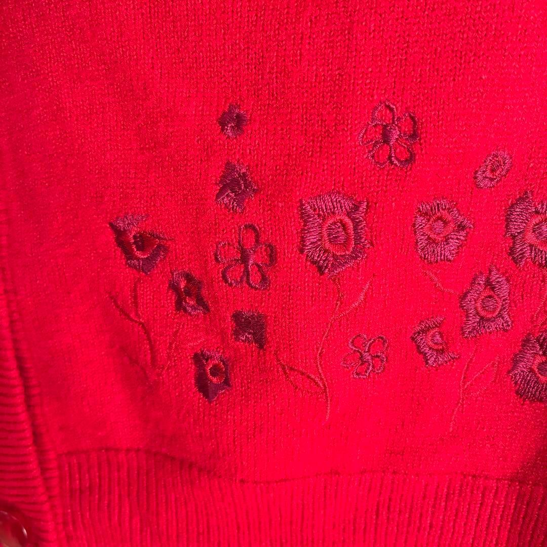 【カーディガン】レッド 花柄刺繍 クリスマス レイヤード デート 上品 通勤 A14DB0