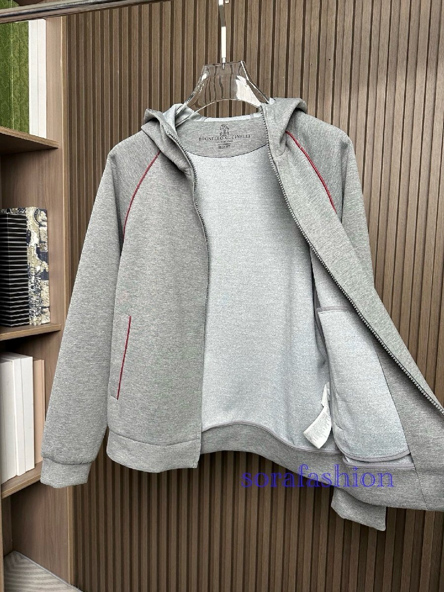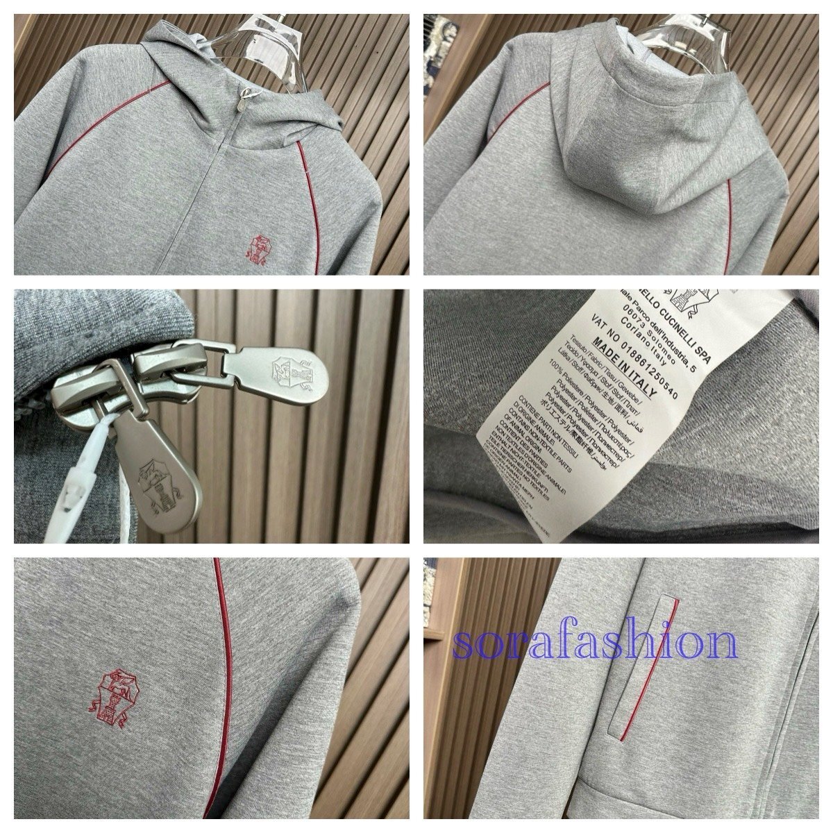 BRUNELLO CUCINELLIメンズスウェット上下2点セット セットアップ グレー 48サイズ ジャケット ジップアップパーカー 長ズボン スポーツ