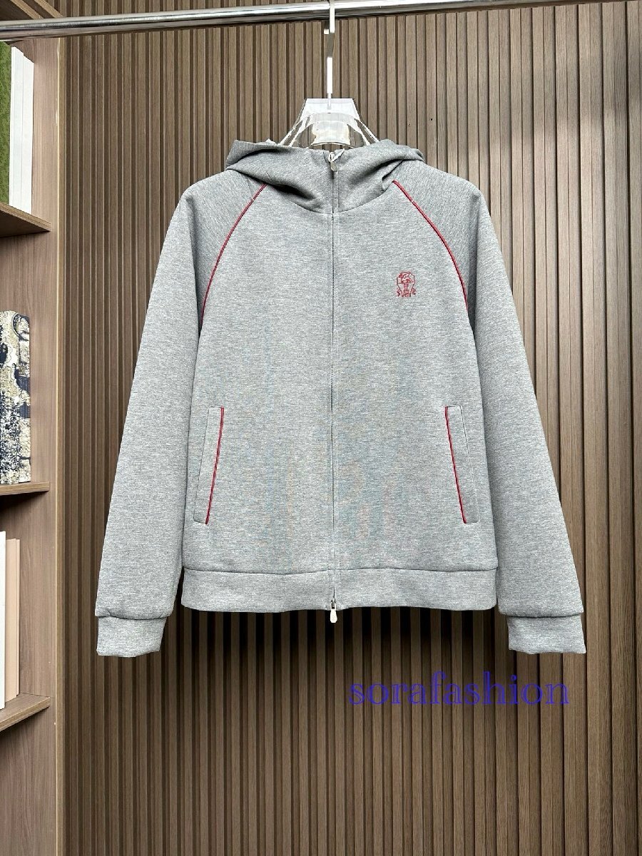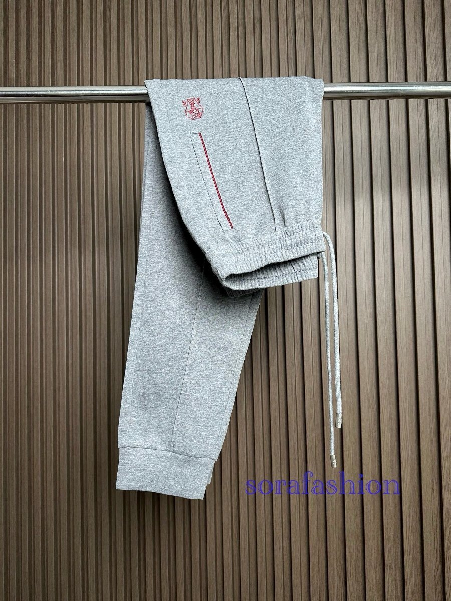 ブルネロクチネリ Brunello Cucinelli メンズセットアップ 上下2点セット ゴムウエスト ブルゾン ジップアップパーカー カジュアルロングパンツ スポーツウェア ボトムズ 長ズボン 紳士服 イタリア エアー綿