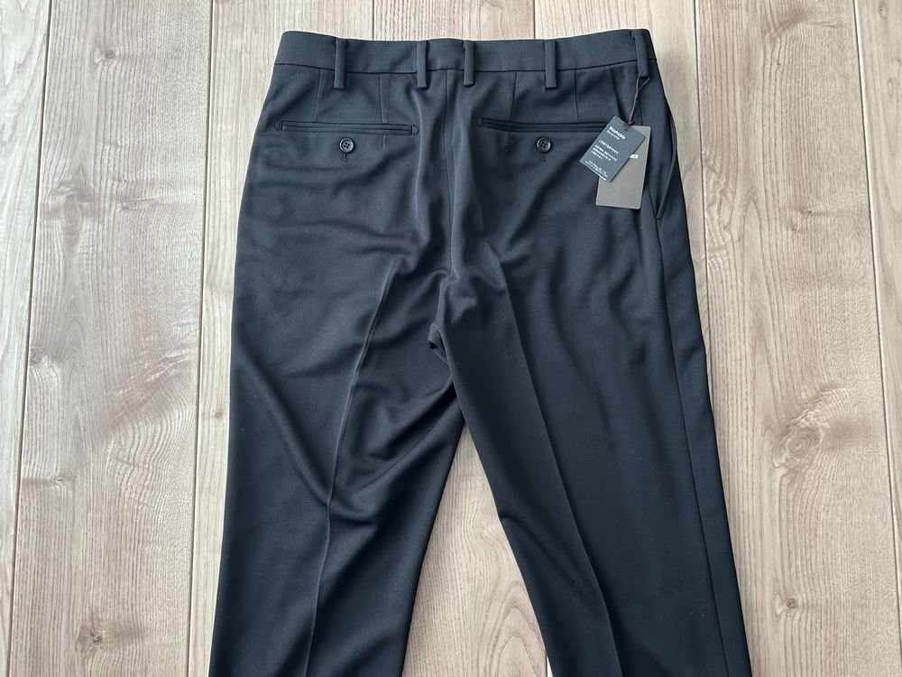 適度にフィットしたシルエットのノータックテーパードパンツです。