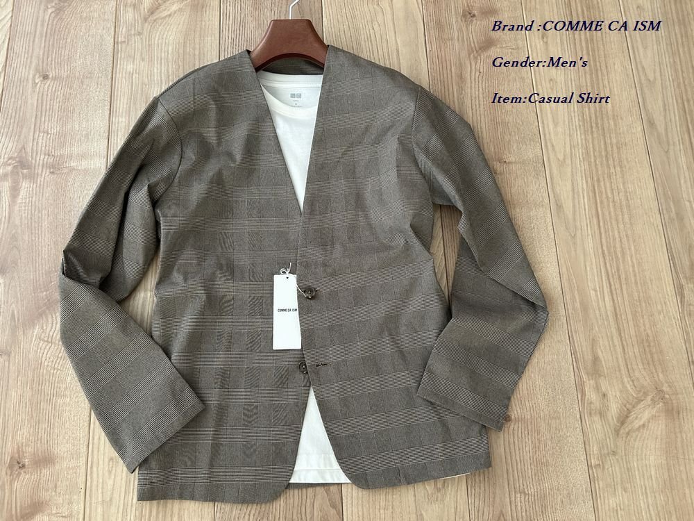 新品 COMME CA ISM MEN コムサイズム ウォッシャブル ノーカラー ジャケット 52ブラウン Lサイズ 25JC09 定価8,900