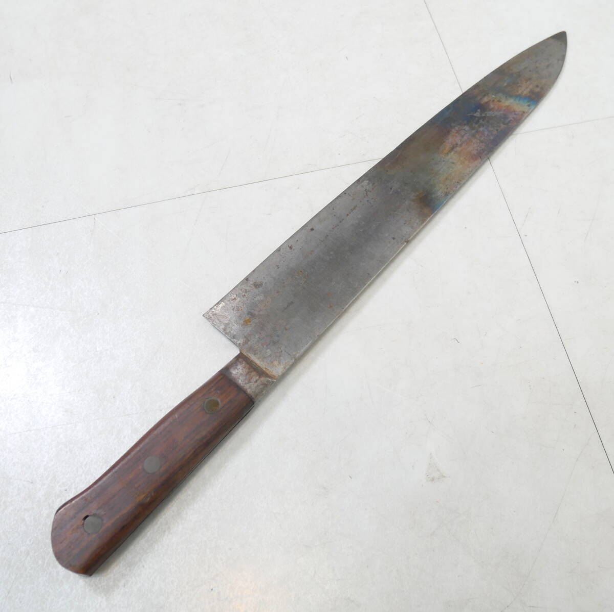 | ▲(R712-H170) 泉正忠 牛刀 300mm 刃物 調理器具 大型 包丁 庖丁 3本鋲 全長約425mm | ||