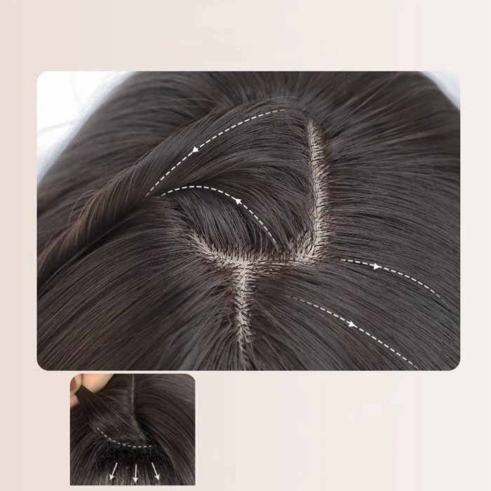 超自然なつむじ:つむじには頭皮に近いカラーの大幅の人工頭皮を採用。トップもふんわりと立ち上がる植え方になり、生え際もより自然に。
