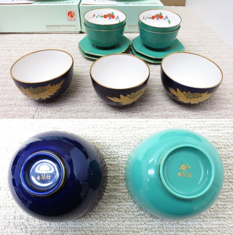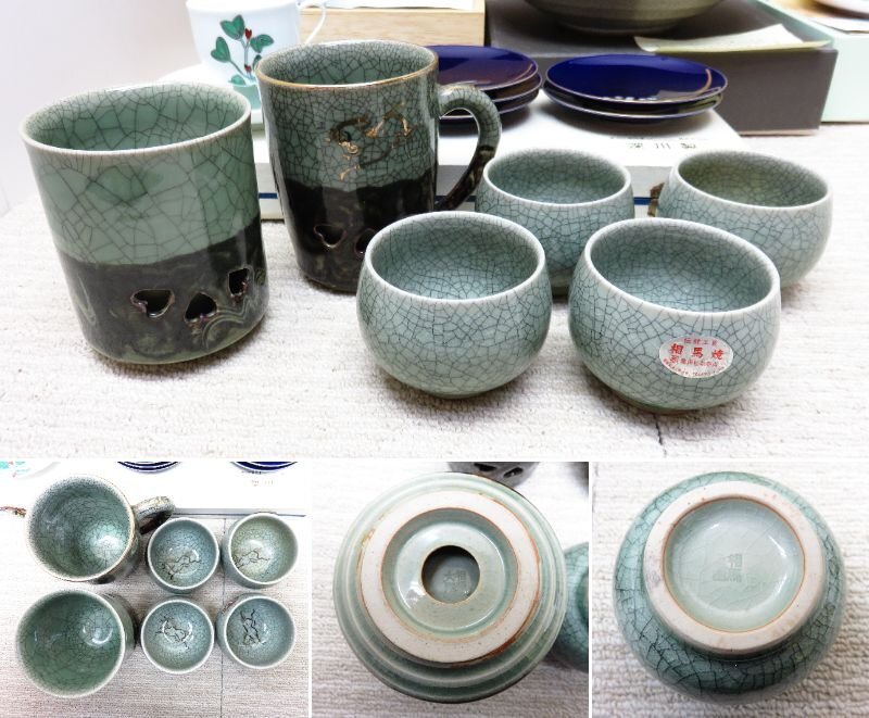 中古 食器 まとめ 香蘭社 深川製磁 有田焼 益子焼 相馬焼 銘々皿 八角皿 プレート 湯呑 茶托 カップ&ソーサー 和食器 金彩 青ひび 二重焼