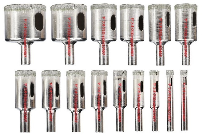 ■窓ガラス・水槽などのガラス素材、花崗岩・大理石・陶器店・タイルなどの石材に丸穴をあけるホルソーのセットです。