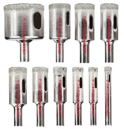 ■窓ガラス・水槽などのガラス素材、花崗岩・大理石・陶器店・タイルなどの石材に丸穴をあけるホルソーの 1 0 セットです。