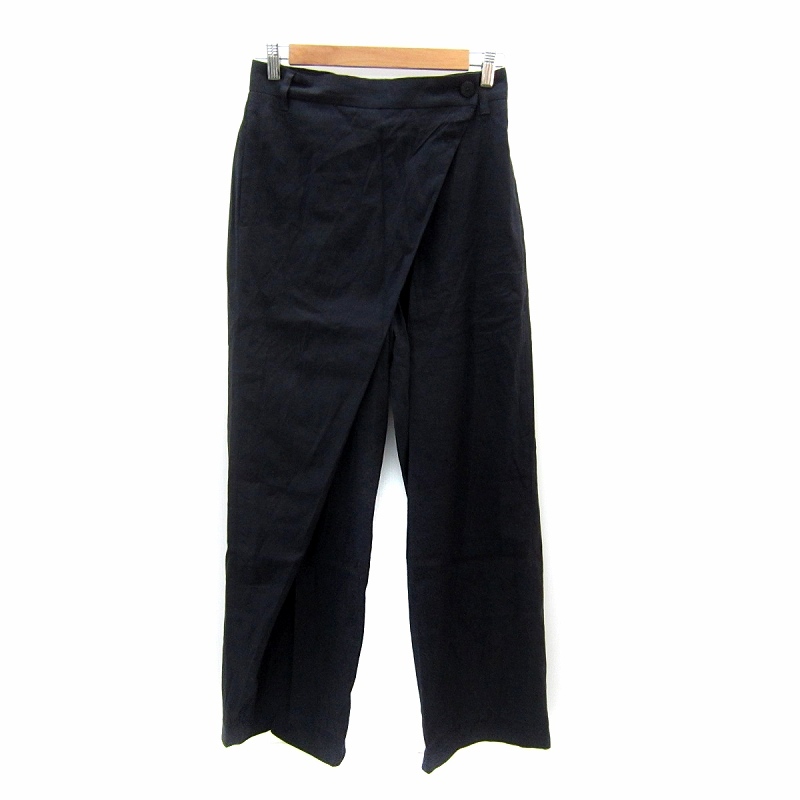 エディション トゥモローランド 25SS リネンストレッチラップスラックスパンツ 麻 36 S 黒 34-04-51-04022 /SY2 ■GY19 レディース