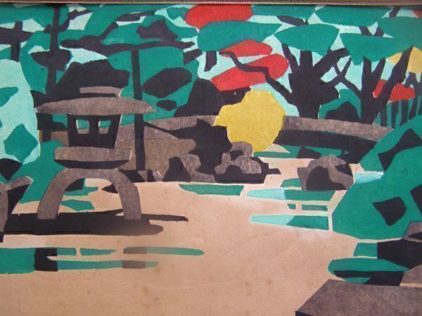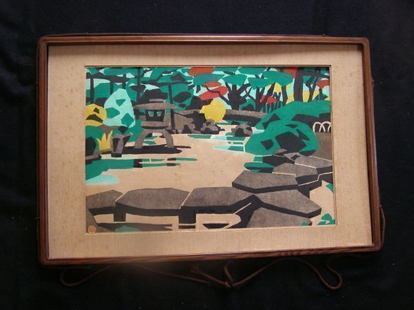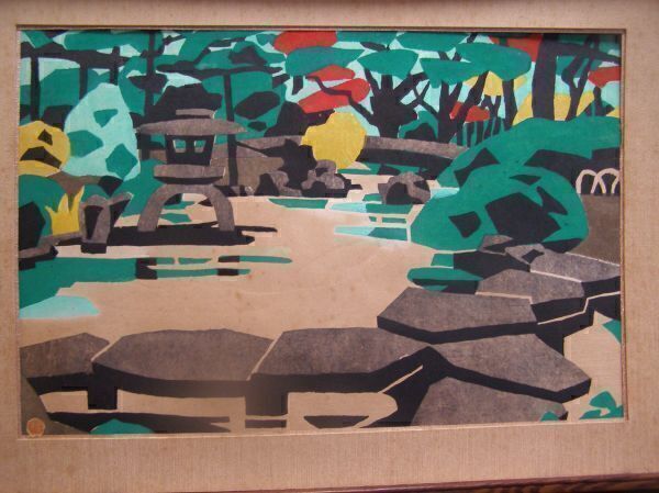 | 真作 川西 祐三郎(国画会会員)★庭園★木版画(P8) | ||