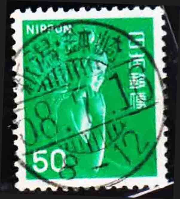 (877)日本切手・50円緑仏済み・新潟・鉢崎58年7月26日