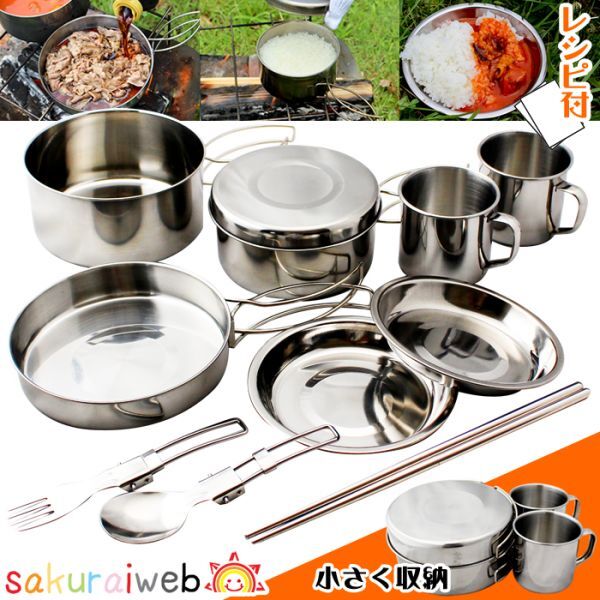 アウトドア 鍋 11点 アウトドア鍋 キャンプクッカー アウトドアクッカー クッカー 鍋 フライパン 皿 箸 お箸 スプーン フォーク