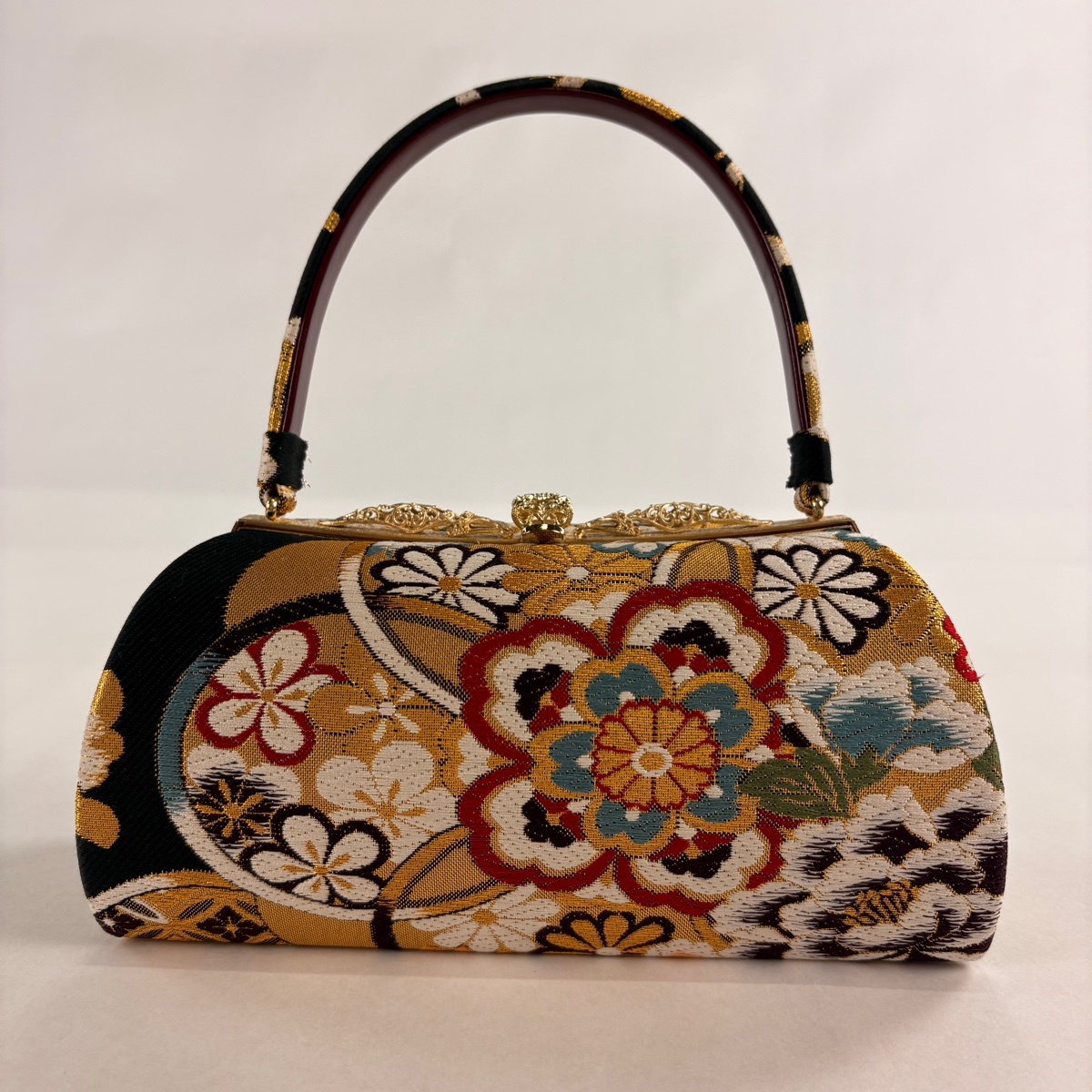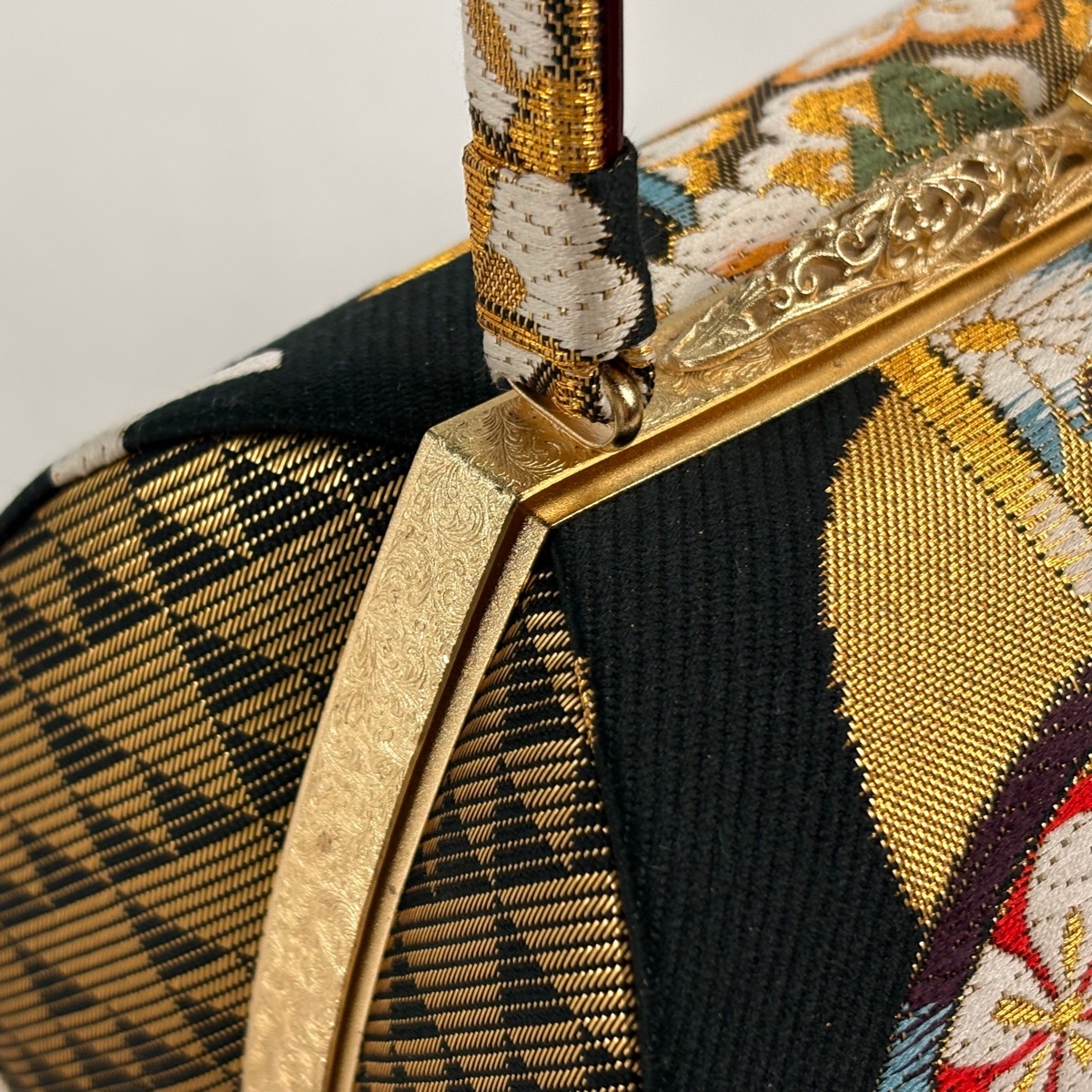 | 和装バッグ 美品 優品 フォーマル 華文 梅 金糸 箔 黒 正絹 和装小物 【中古】 |