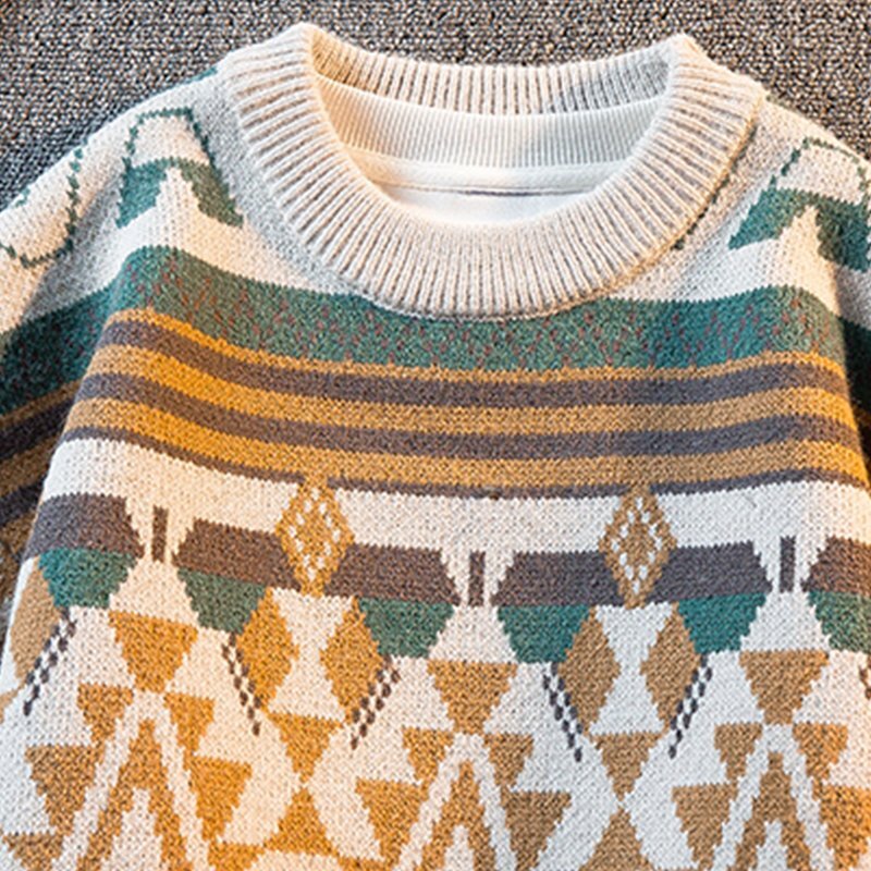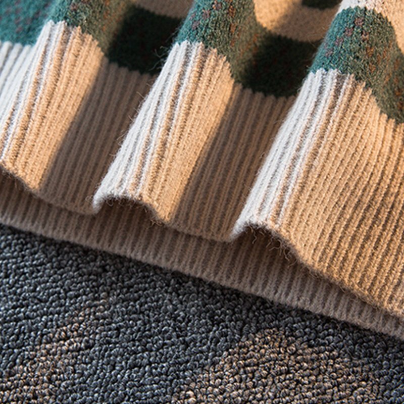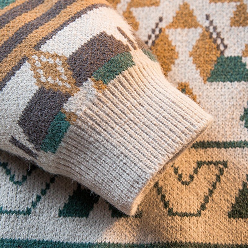 この イタリア製ヴィンテージ風ジャカードニット は、高品質素材を使用し、柔らかく肌触りの良い仕上がりです。