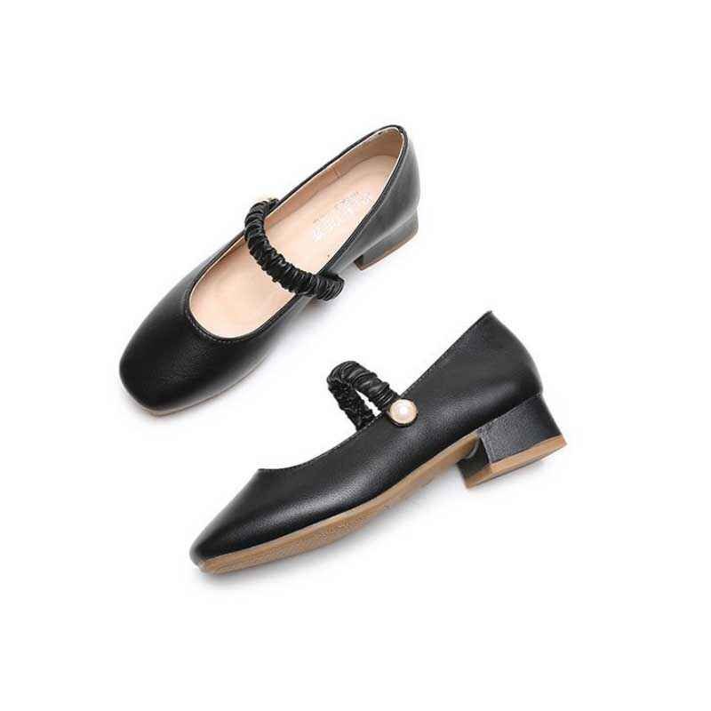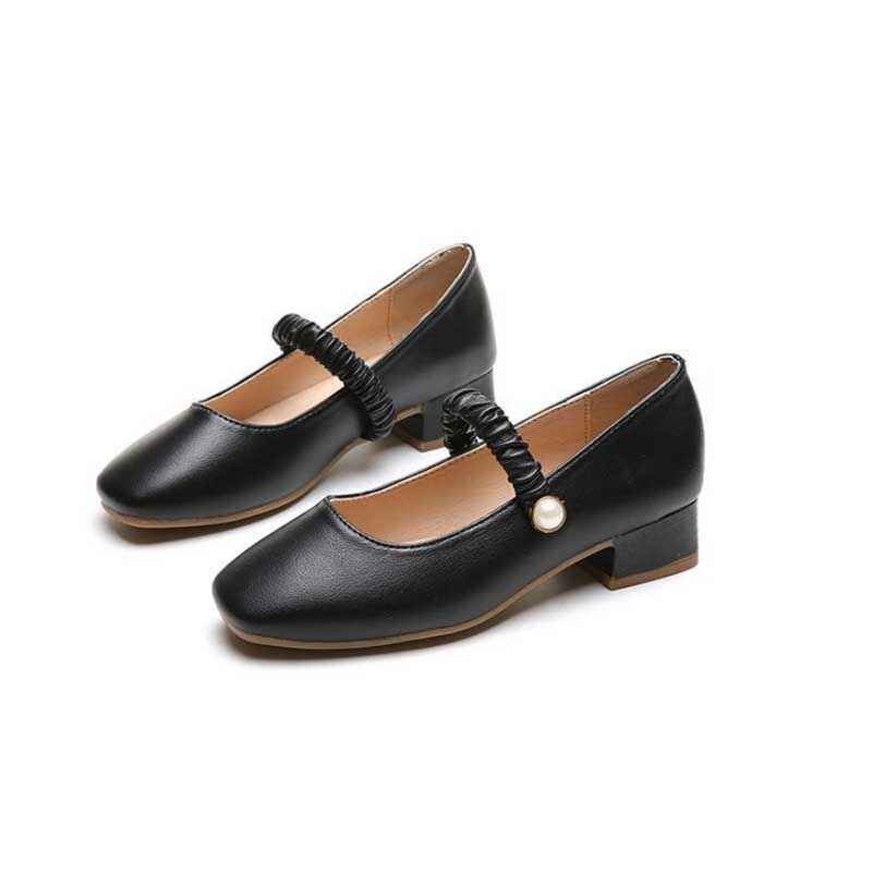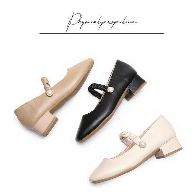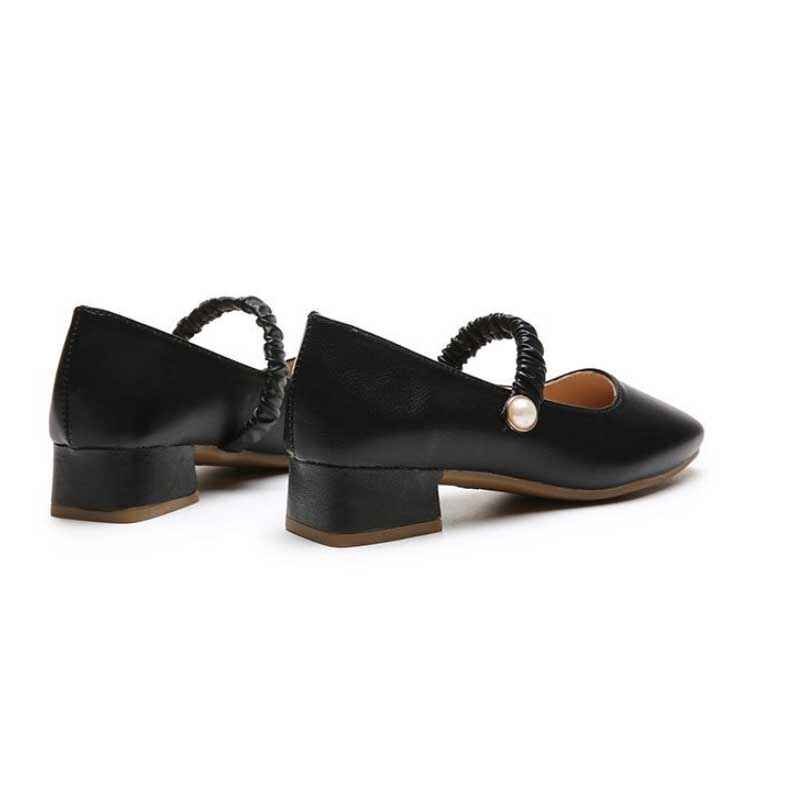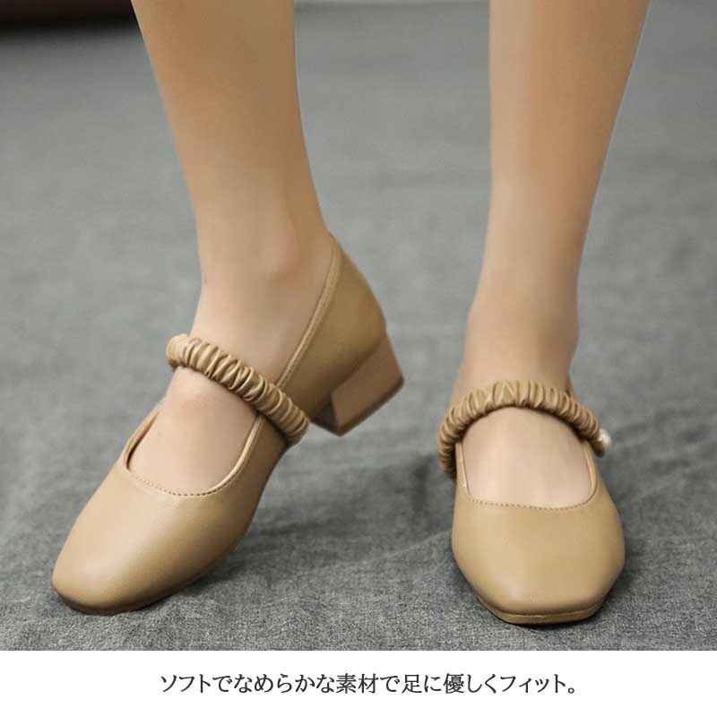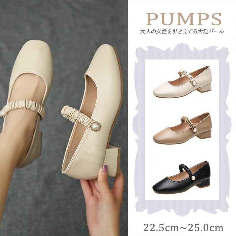 レディース パンプス スクエアトゥ 靴 シンプル ローヒール 黒 美脚 パール チャンキーヒール 40 黒