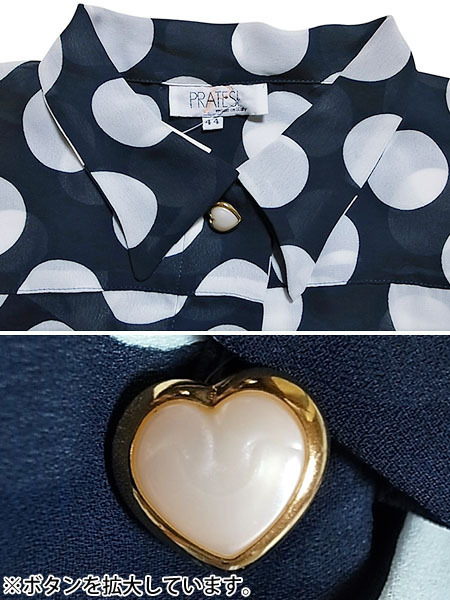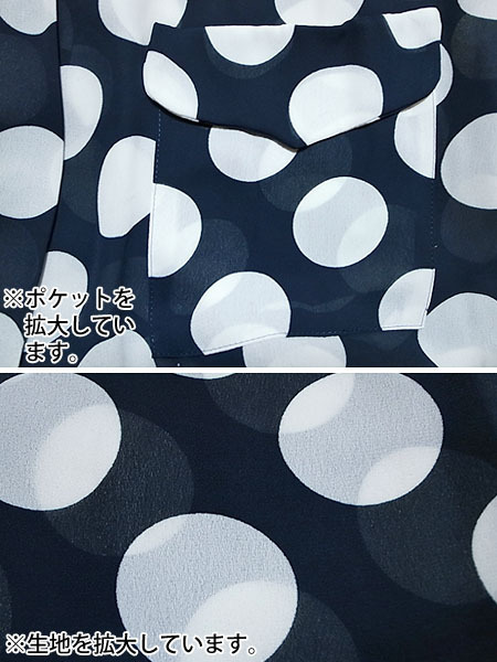 ■落ち着いた配色や、大きな水玉が特徴的な半袖ブラウスになります。(写真①②③参照)
